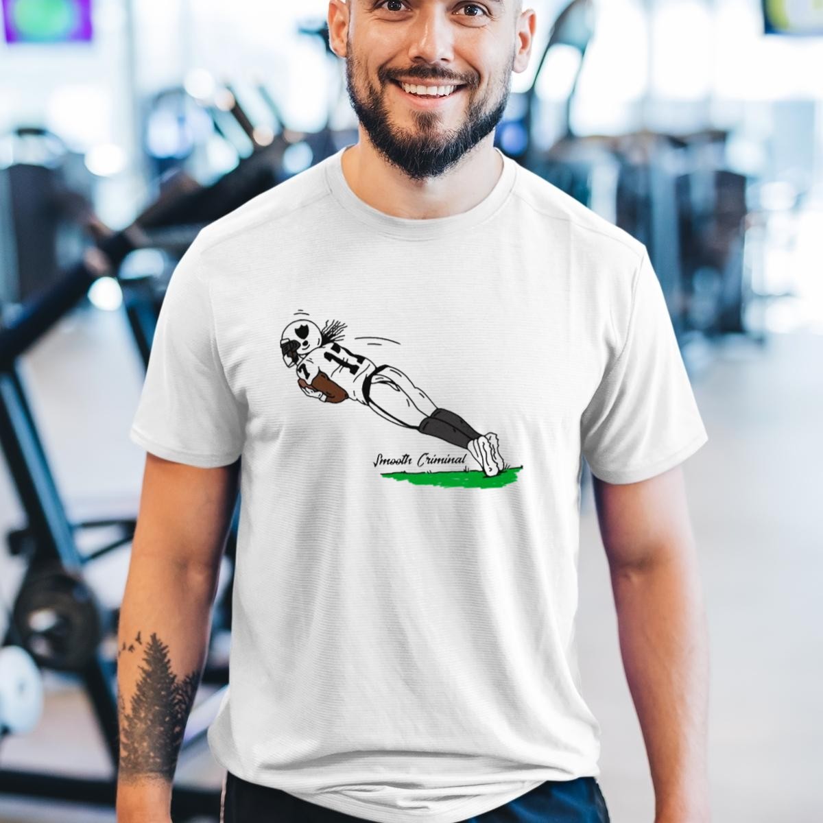 Show your support for Davante Adams and the Las Vegas Raiders with our Smooth Criminal T-shirt, perfect for devoted fans and football enthusiasts alike. This fan-made design captures the essence of the game, making it an ideal choice for casual outings, themed events, or daily wear. The high-quality print and comfortable fit ensure you not only look great but feel great while cheering on your favorite team!