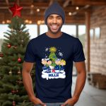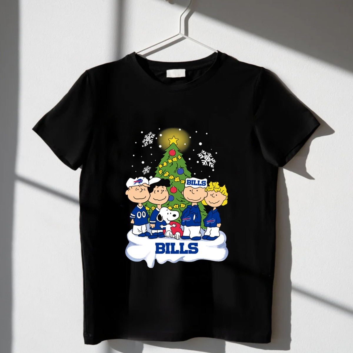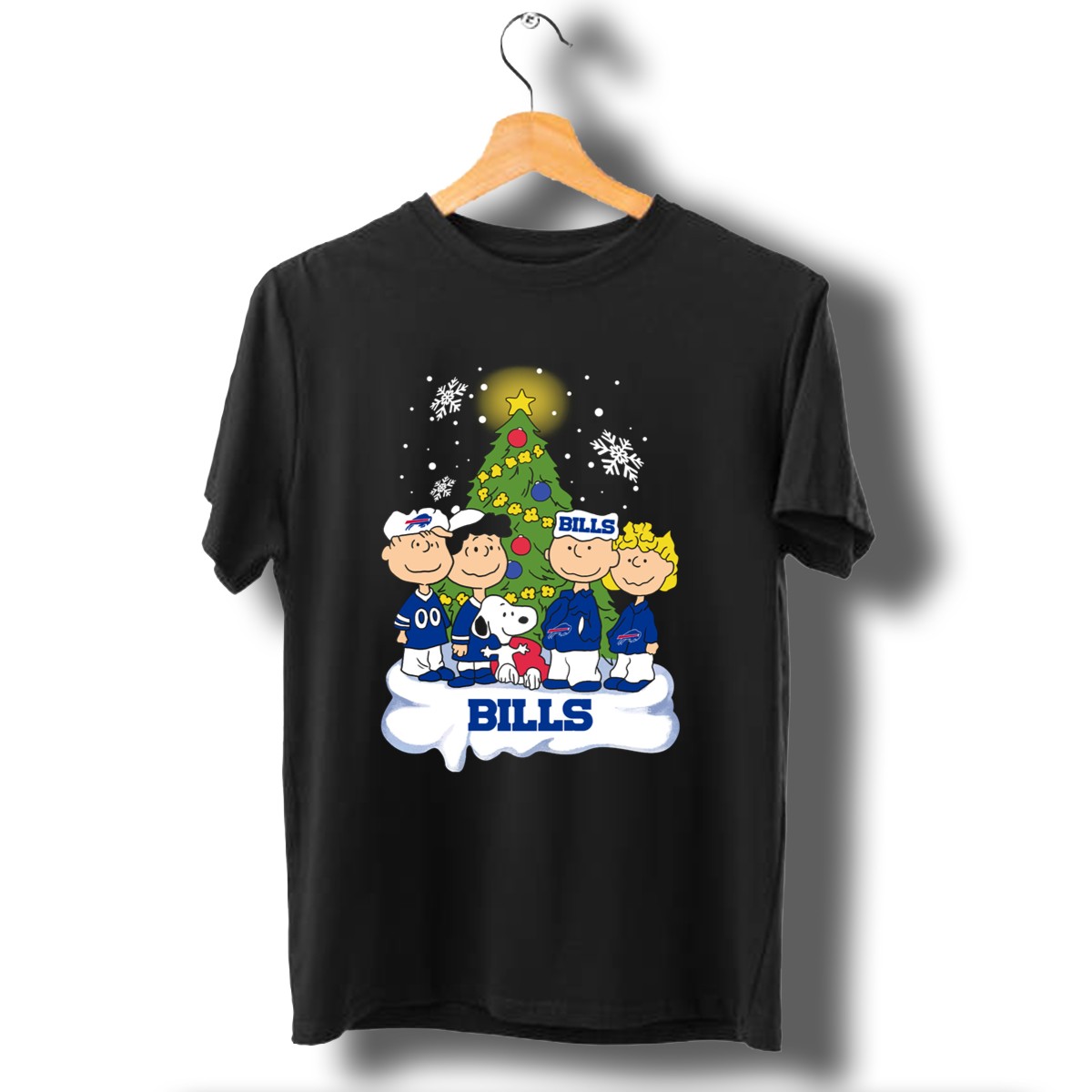 Snoopy And Peanuts Characters Celebrating With Buffalo Bills Christmas Tree T-Shirt