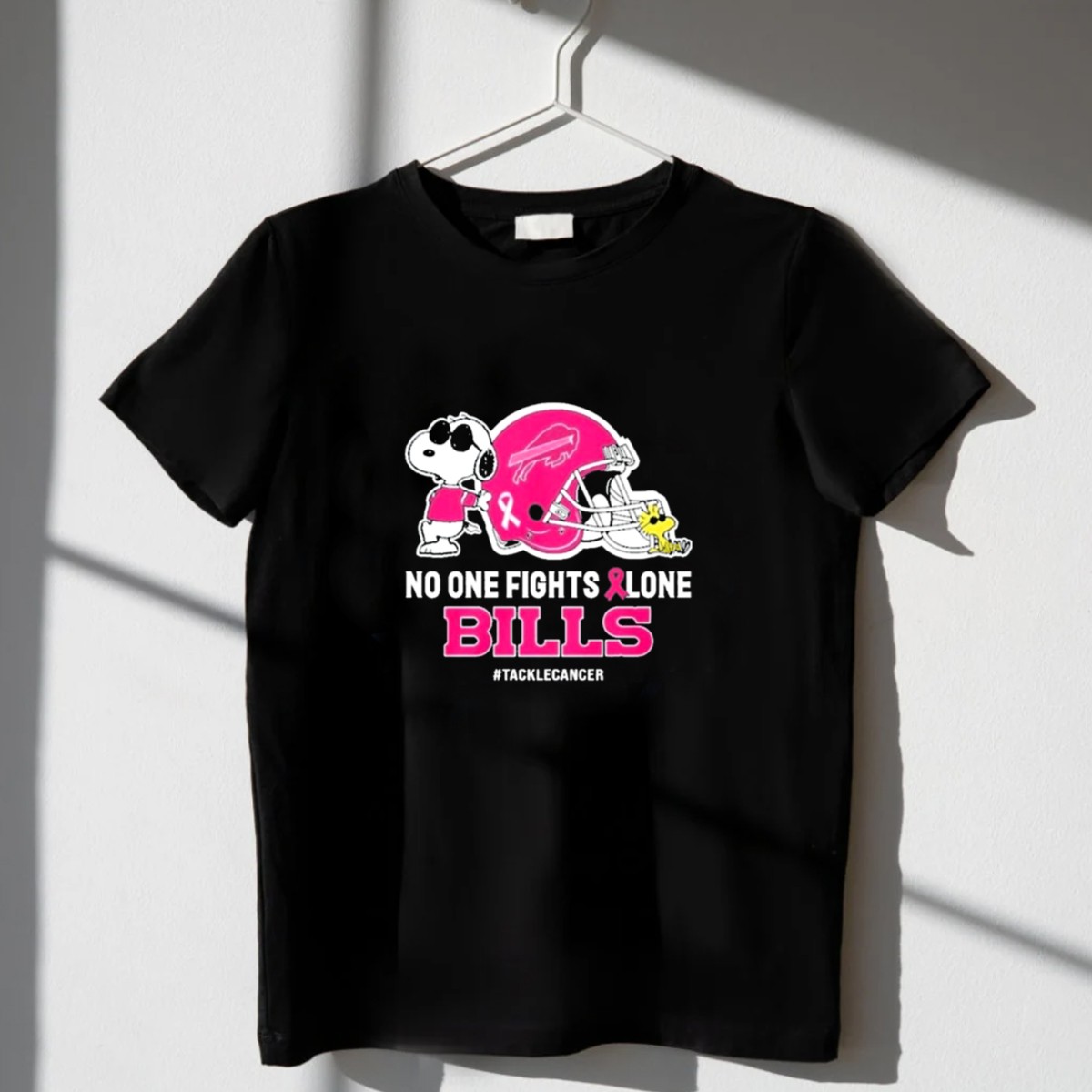 Snoopy And Woodstock No One Fights Alone Buffalo Bills Tacklecancer T-Shirt