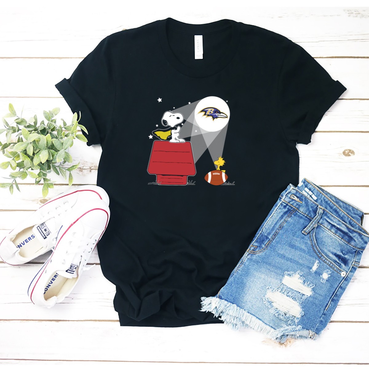 Show your love for the Baltimore Ravens and your favorite Peanuts characters with this eye-catching Snoopy and Woodstock graphic T-shirt! Perfect for fans who enjoy casual outings, themed events, or simply lounging at home, this shirt combines comfort and style with a fun, playful design. Made for those who want to celebrate their team spirit with a unique twist, it features a vibrant print that brings together the charm of Snoopy and Woodstock with the excitement of football.