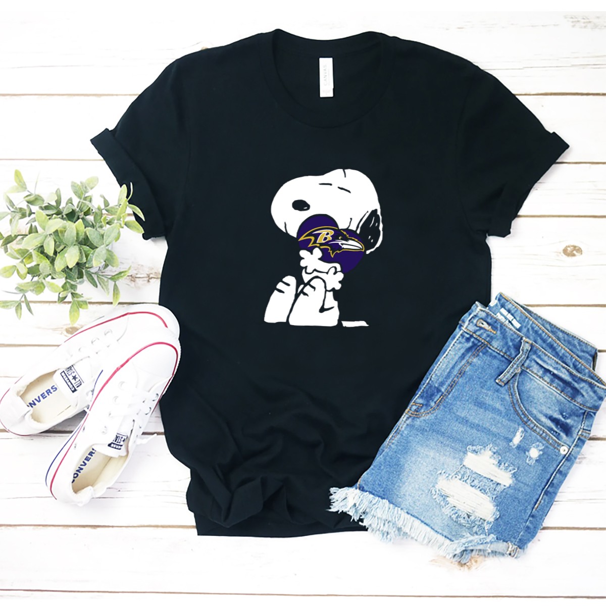 Show your love for both Snoopy and the Baltimore Ravens with this fun and stylish graphic printed T-shirt! Perfect for fans of all ages, this shirt is great for casual outings, themed events, or just lounging around. Made with a fan-made design printed in the USA, it’s a unique way to express your team spirit while enjoying the comfort of high-quality materials.