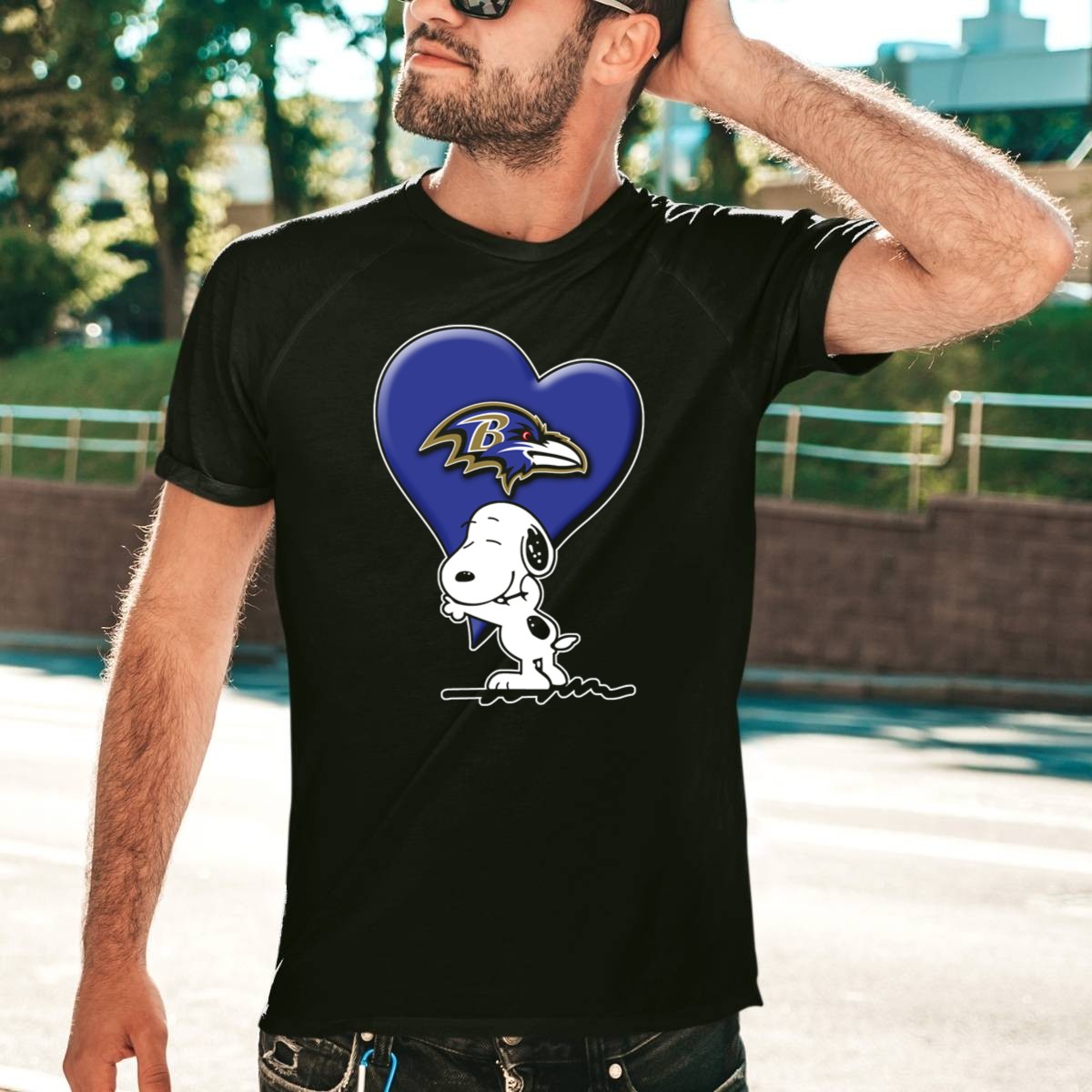 Show your love for the Baltimore Ravens in a fun and unique way with our Snoopy Hugging Baltimore Ravens Heart T-Shirt! Perfect for fans of all ages, this shirt combines the beloved Peanuts character with your favorite football team, making it an ideal choice for casual outings, game day celebrations, or themed events. Crafted with comfort in mind, this shirt is not only stylish but also a great conversation starter among fellow fans.
