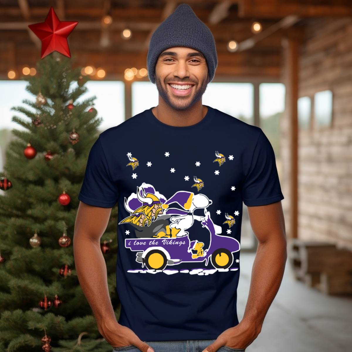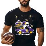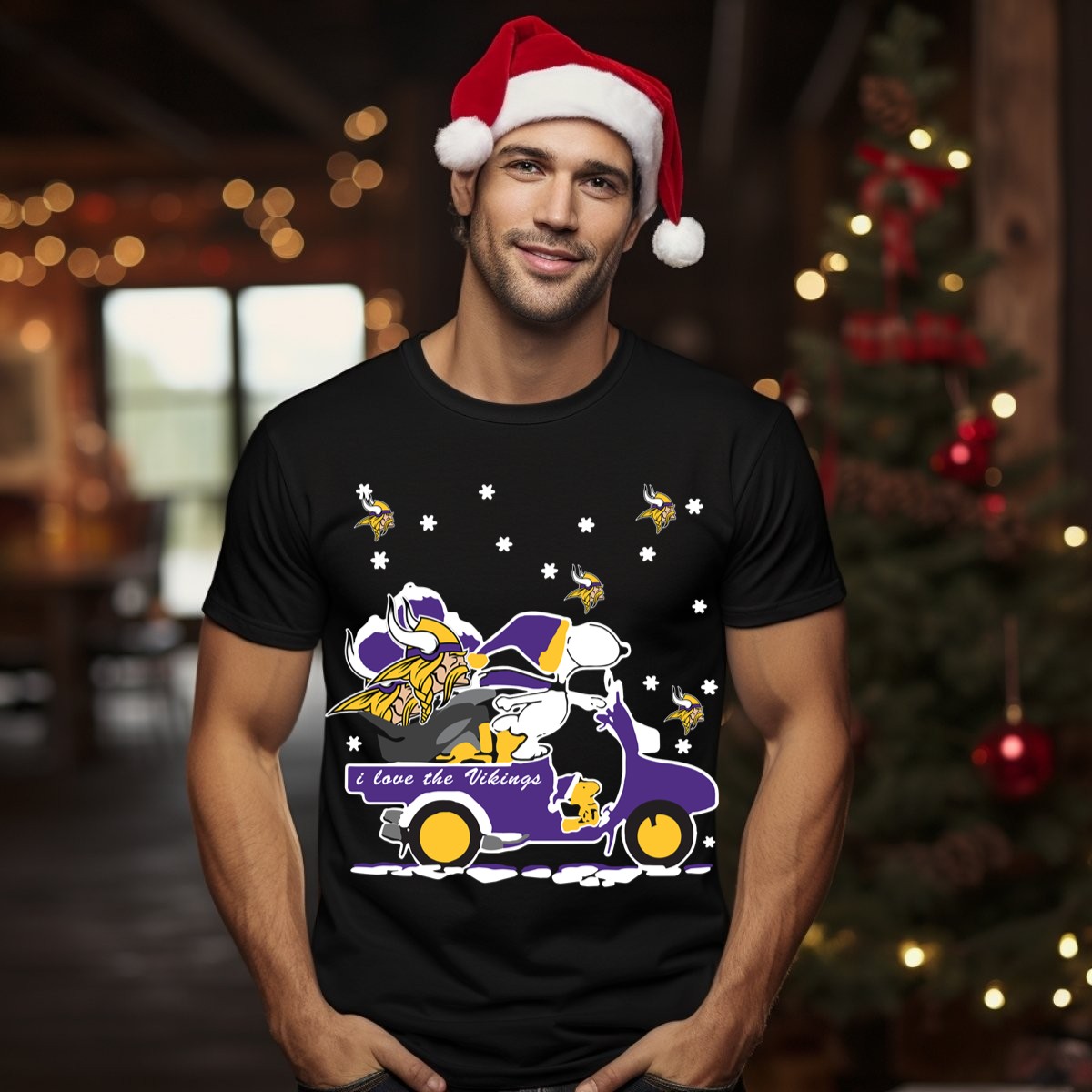 Show your love for both Snoopy and the Minnesota Vikings this holiday season with our fan-made graphic T-shirt! Perfect for die-hard fans and casual wearers alike, this shirt is a delightful addition to your wardrobe for themed events, daily outings, or cozy holiday gatherings. Made in the USA, it combines a classic fit with a playful design that celebrates your favorite cartoon character and team spirit, making it a unique and fun choice for any occasion.
