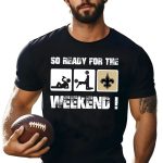 Celebrate your love for the New Orleans Saints with this fan-made “So Ready For The Weekend” T-shirt, perfect for die-hard football enthusiasts and casual fans alike. Made for all-season wear, this classic fit shirt is ideal for game days, casual outings, or themed events. The vibrant print showcases your team spirit, making it a standout piece in any wardrobe.