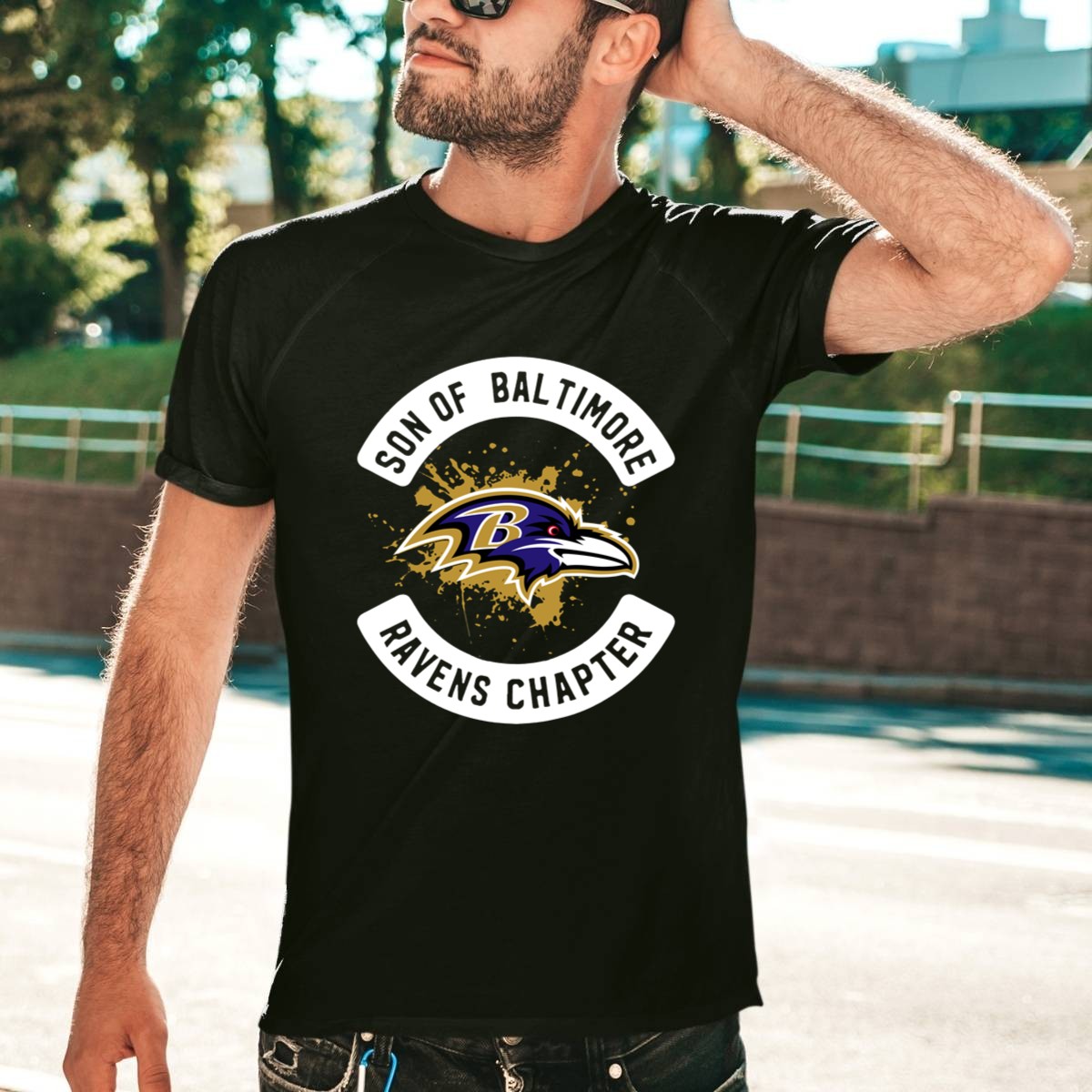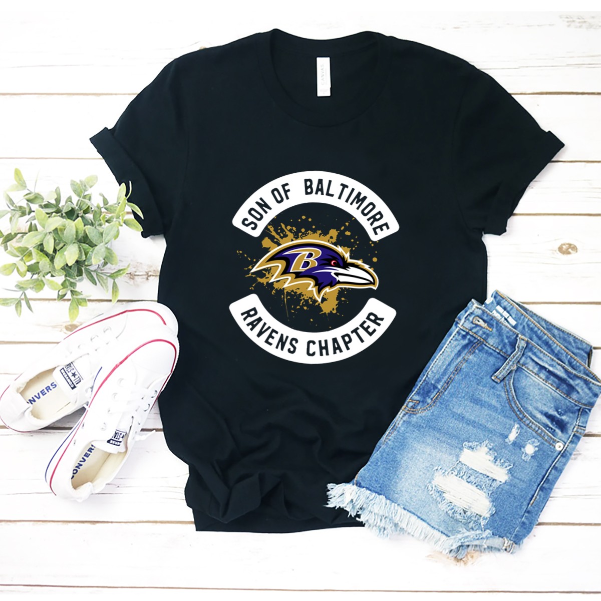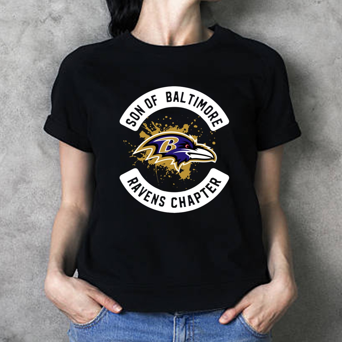 Show your pride as a true Baltimore Ravens fan with this Son of Baltimore Ravens chapter T-shirt! Designed for passionate supporters, this graphic tee is perfect for game days, casual outings, or themed events where you want to showcase your team spirit. Crafted with a fan-made design and printed in the USA, it combines comfort and style, making it a must-have addition to your wardrobe.