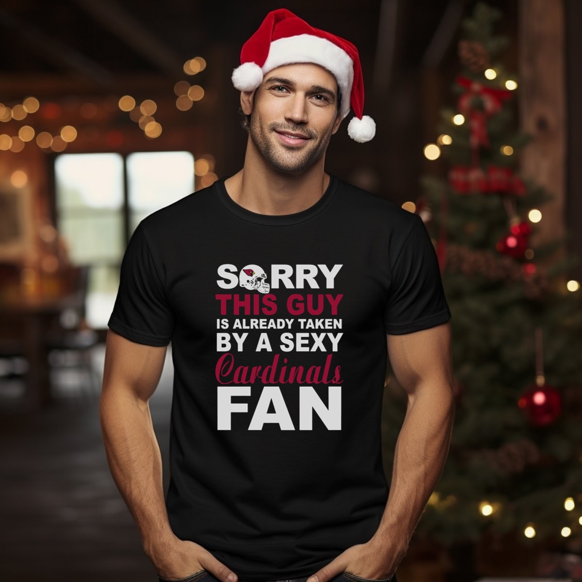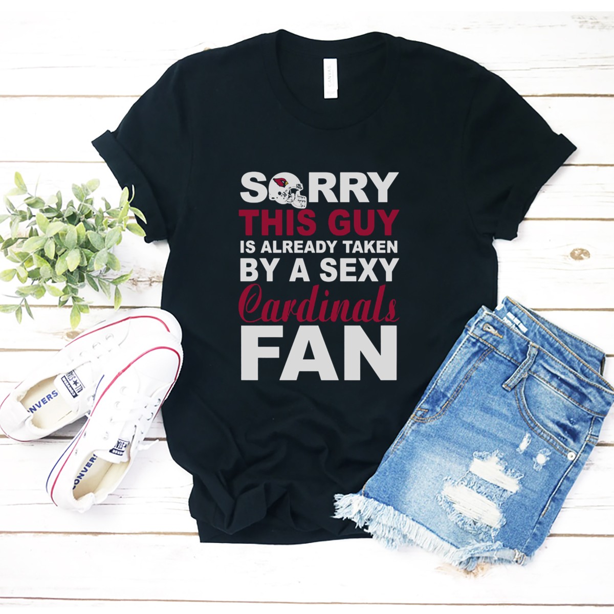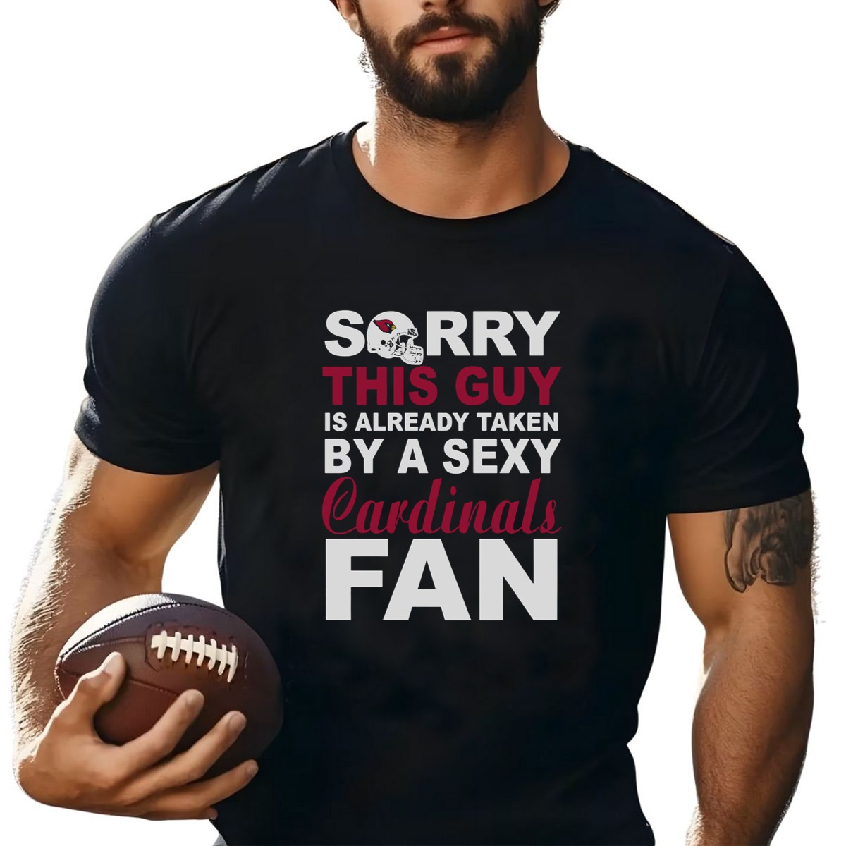 Show off your playful side with our “Sorry This Guy Is Already Taken By A Sexy Cardinals Fan” T-shirt! Perfect for die-hard Cardinals fans and anyone with a sense of humor, this shirt is ideal for casual wear, themed events, or just lounging around. Made for comfort and style, it’s a fun way to express your loyalty to your favorite team while keeping it light-hearted and fun. With a fan-made design printed right here in the USA, this shirt is as unique as your love for the game!