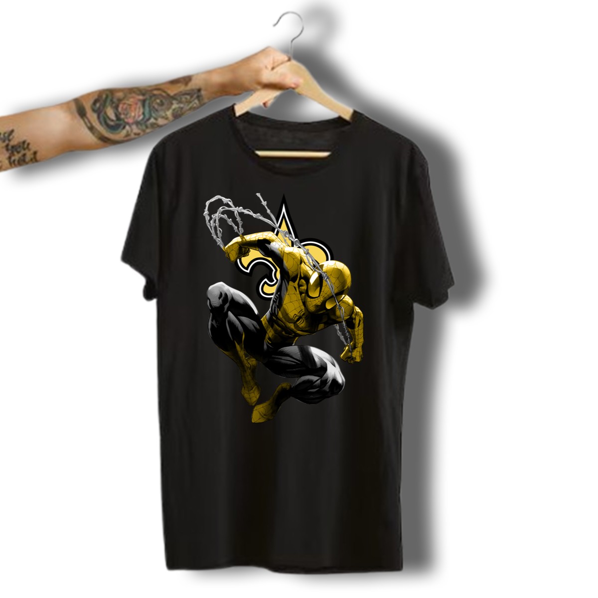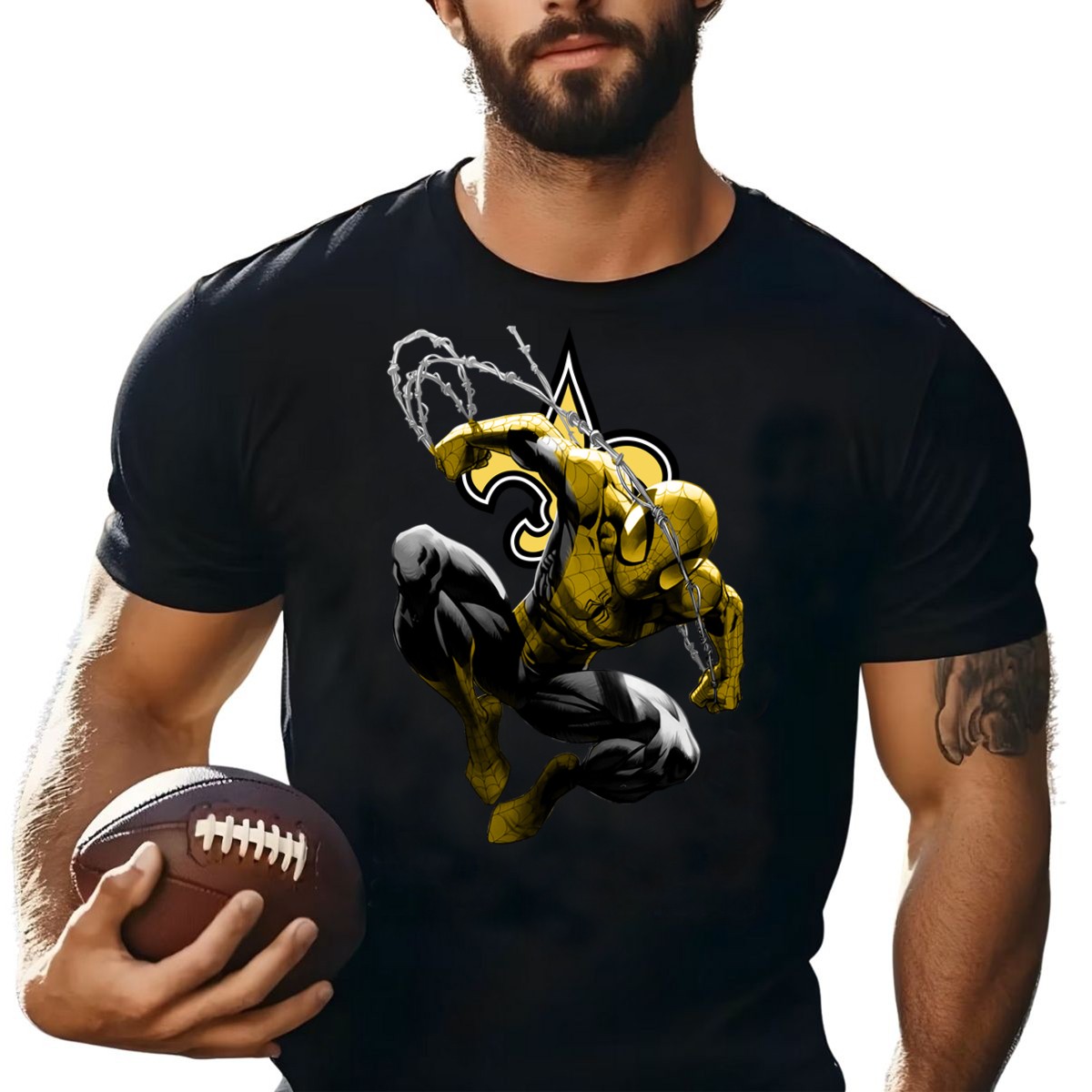 Celebrate your love for both Spiderman and the New Orleans Saints with this unique fan-made graphic T-shirt! Perfect for die-hard fans and casual wearers alike, this shirt is designed for those who want to show off their team spirit in style. Whether you’re at a game, hanging out with friends, or just enjoying a day in the city, this tee will keep you comfortable and looking great all season long.