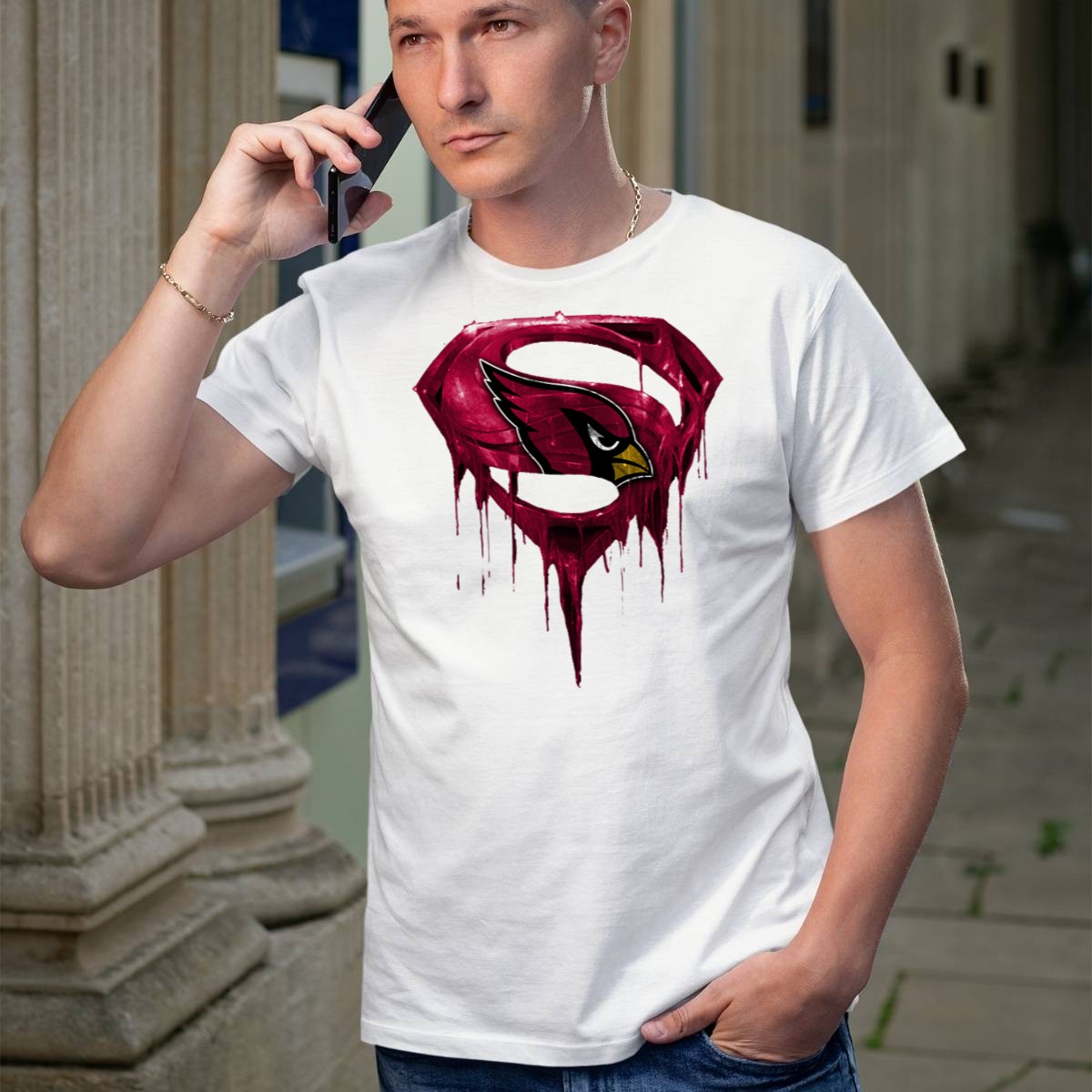 SPM Arizona Cardinals Dripping Super Hero Emblem T-Shirt