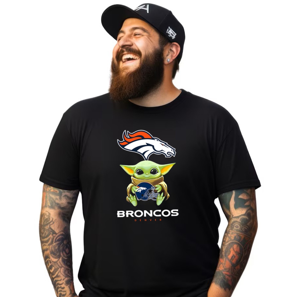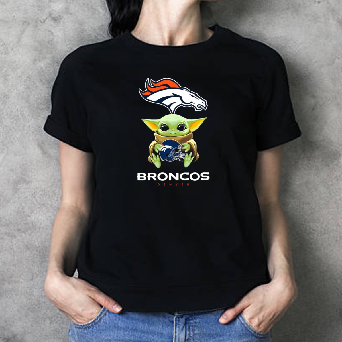 Star Wars Baby Yoda Holding Denver Broncos Helmet T-Shirt