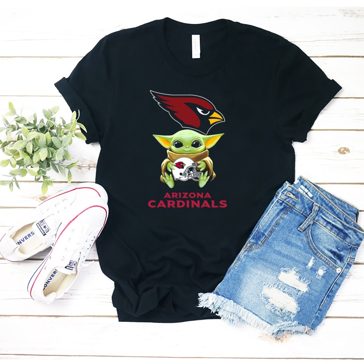 Star Wars Baby Yoda Holds Arizona Cardinals Helmet T-Shirt