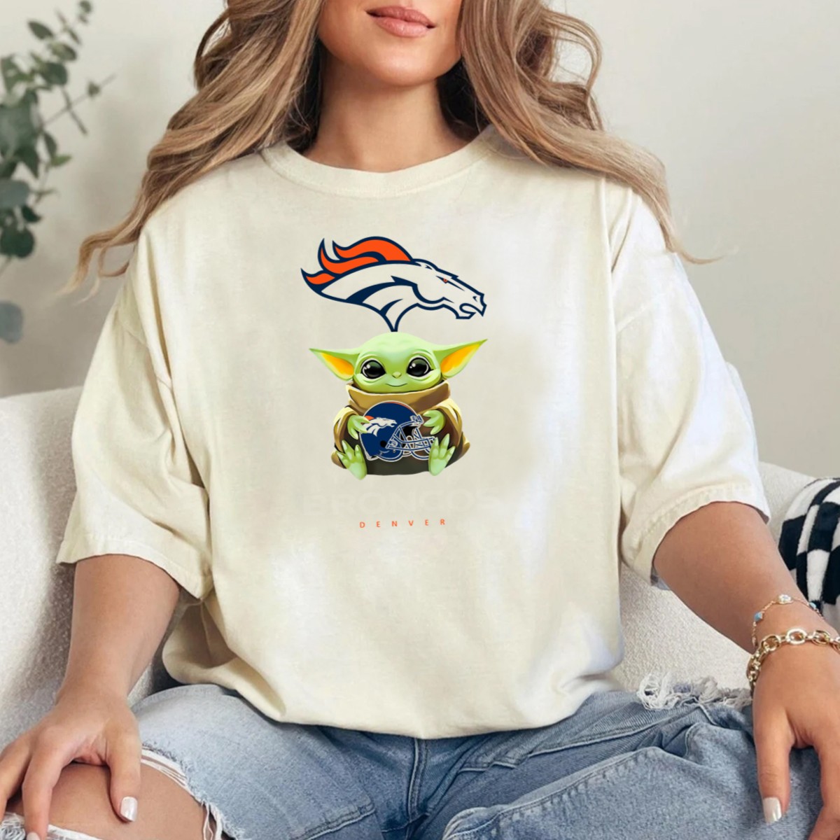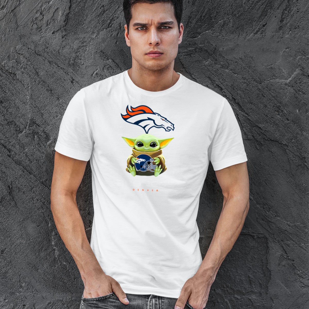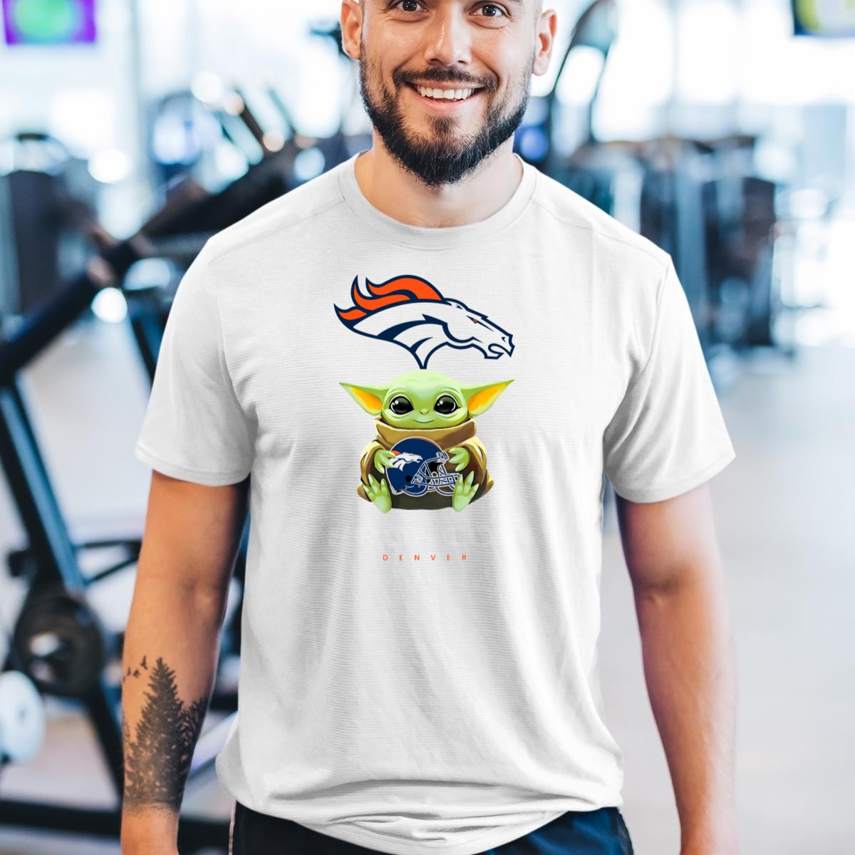 Star Wars Baby Yoda Hug Denver Broncos Helmet Broncos Denver T-Shirt