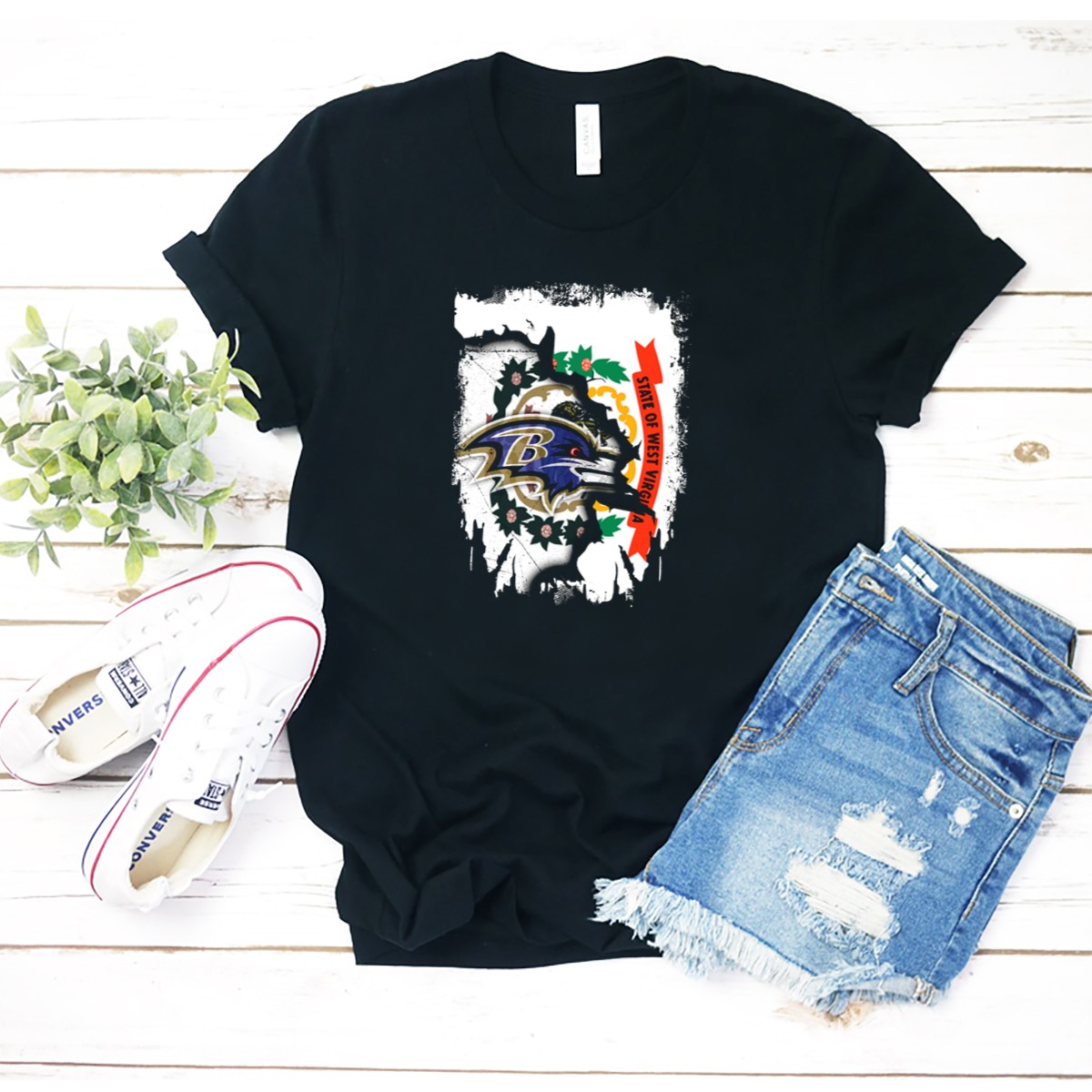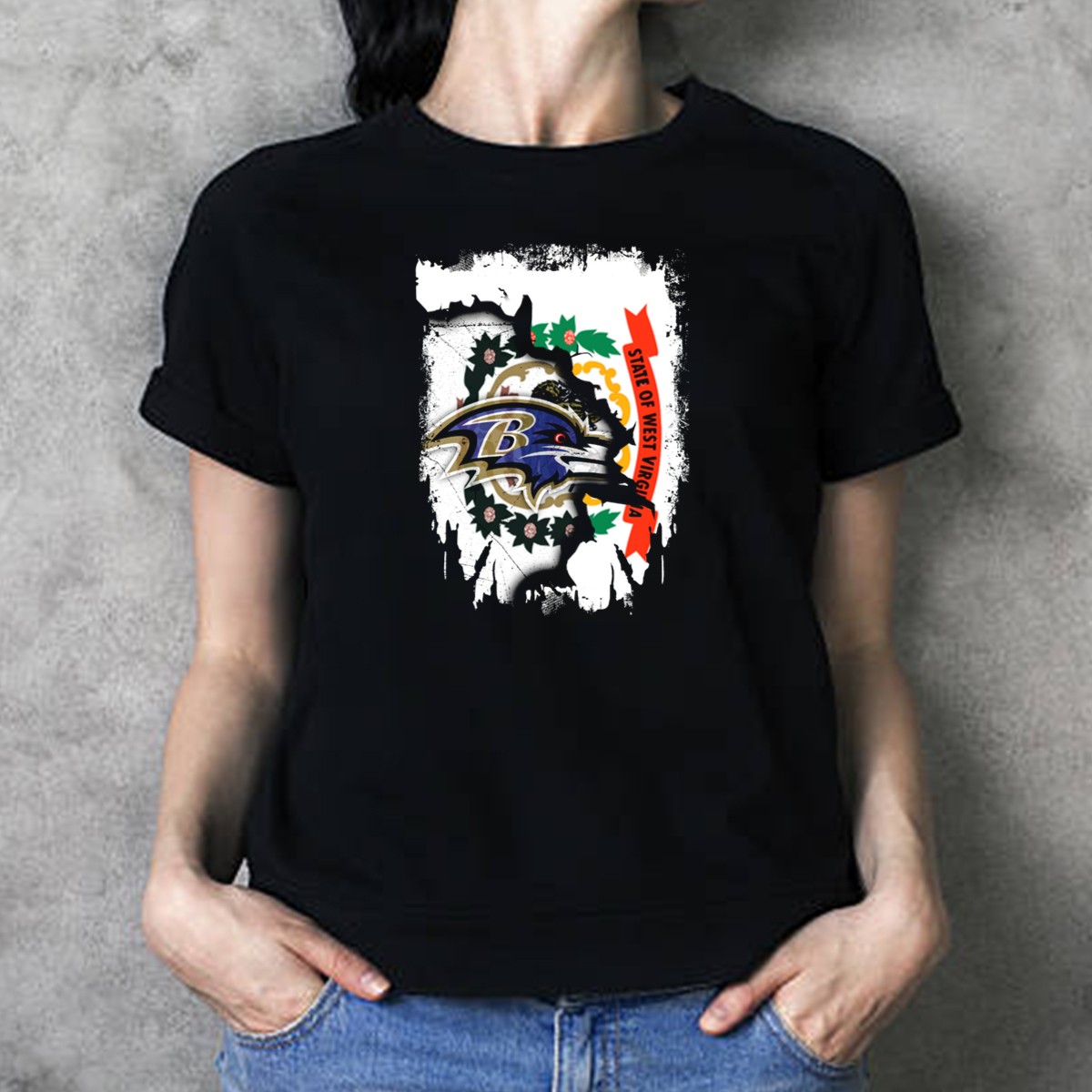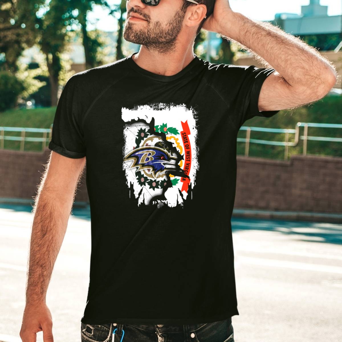 State of West Virginia and Baltimore Ravens Logo Fusion T-Shirt