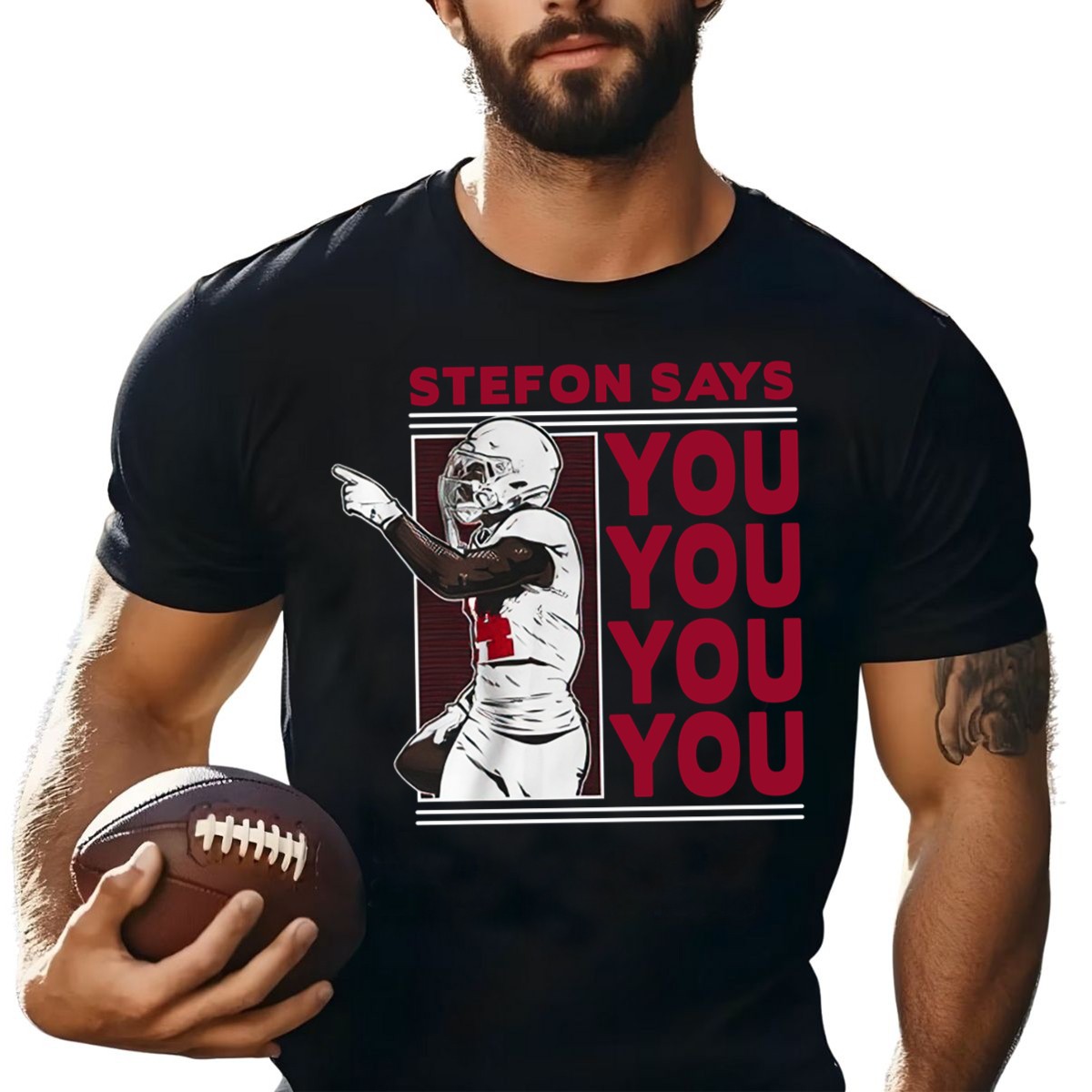 Show your love for Stefon Diggs with this fan-made “You You You You” T-shirt, perfect for dedicated football fans and casual wear enthusiasts alike. Whether you’re cheering from the stands, hosting a themed event, or simply enjoying a day out, this shirt makes a bold statement. Crafted in the USA, its unique design captures the spirit of the game and celebrates your favorite player in style.