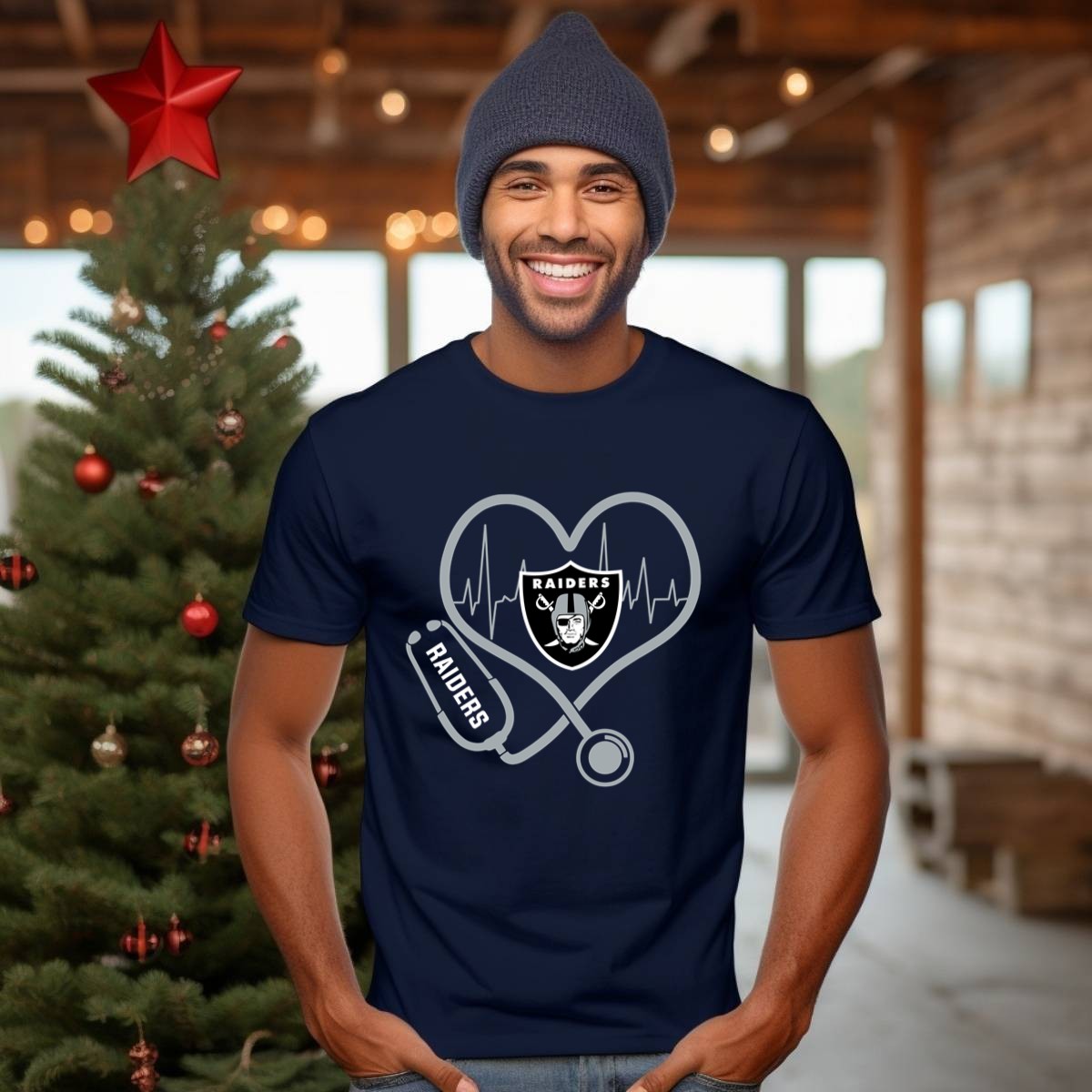 Show your love for both the Oakland Raiders and the medical profession with our Stethoscope Heart T-Shirt! This unique fan-made design is perfect for healthcare professionals, sports enthusiasts, or anyone who wants to showcase their passion for their team in a stylish way. Ideal for casual outings, themed events, or everyday wear, this shirt combines comfort with a bold statement, making it a must-have for any Raiders fan.