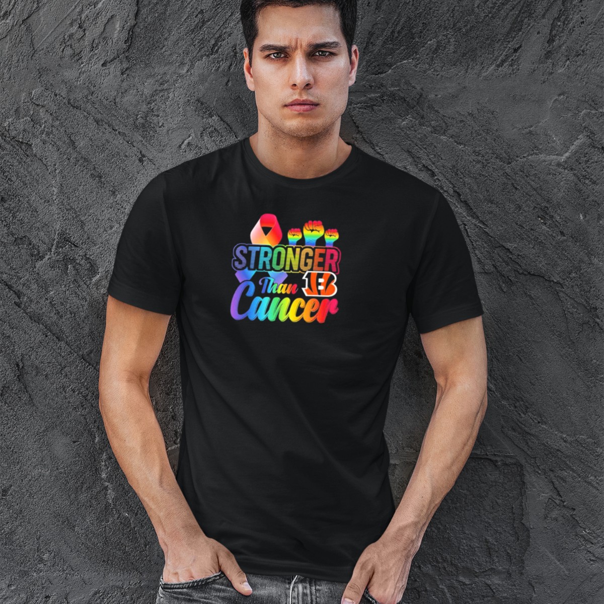 Stronger Than Cancer Cincinnati Bengals NFL Rainbow Ribbon and Fists T-Shirt