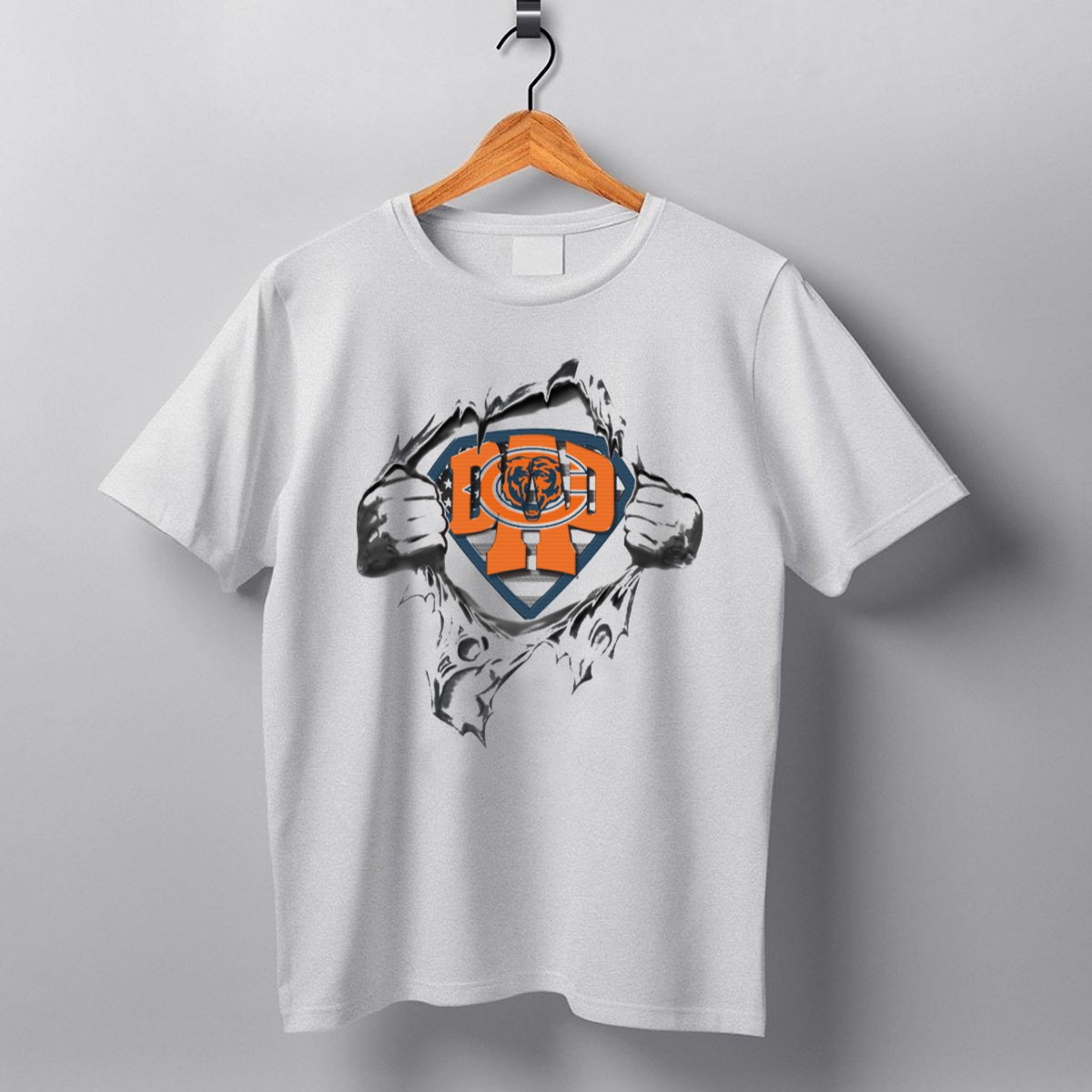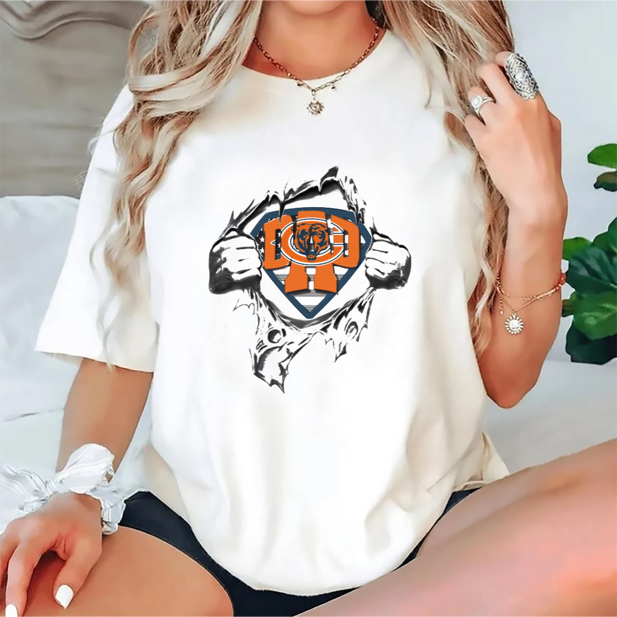 Superdad Chicago Bears Logo Inside Superhero Emblem T Shirt