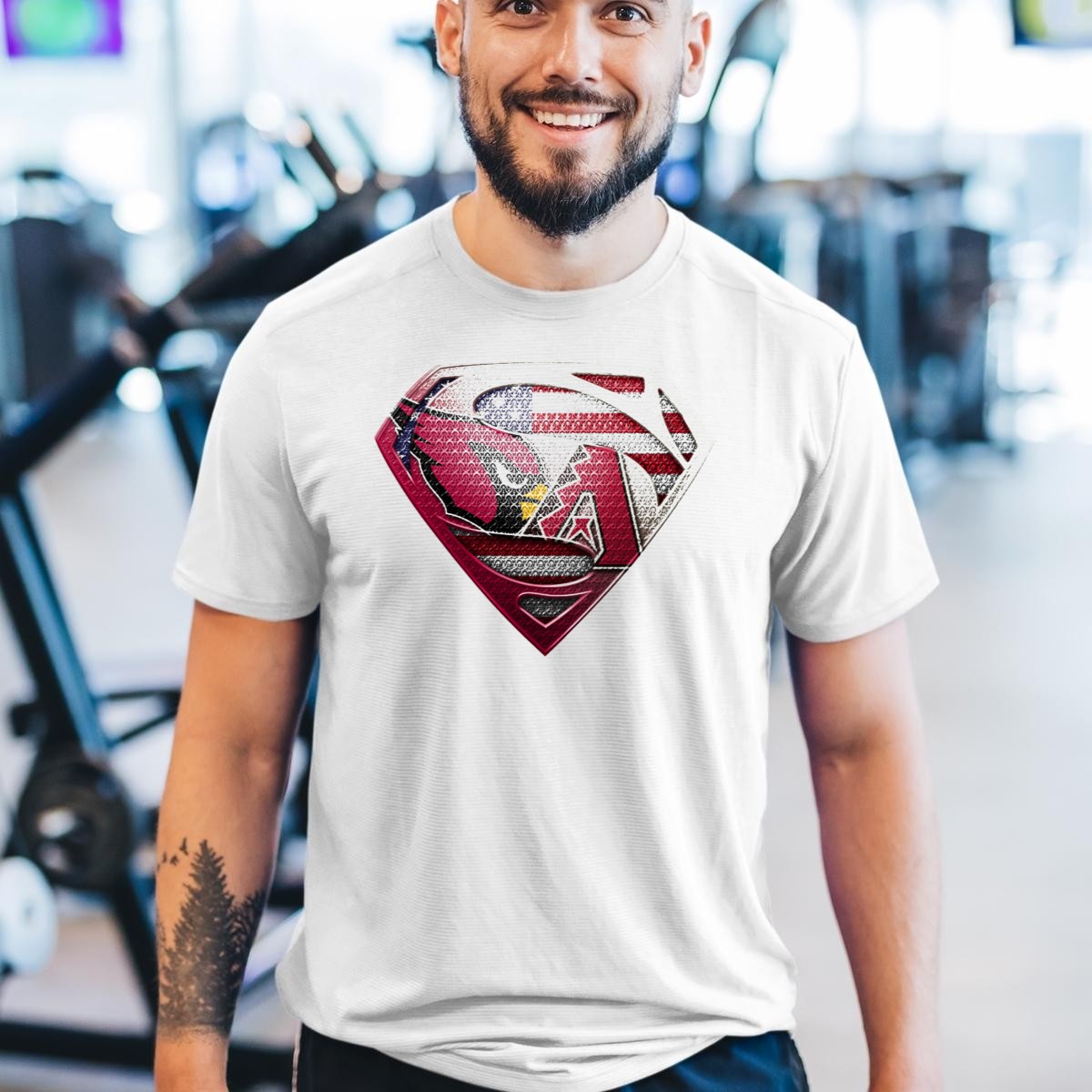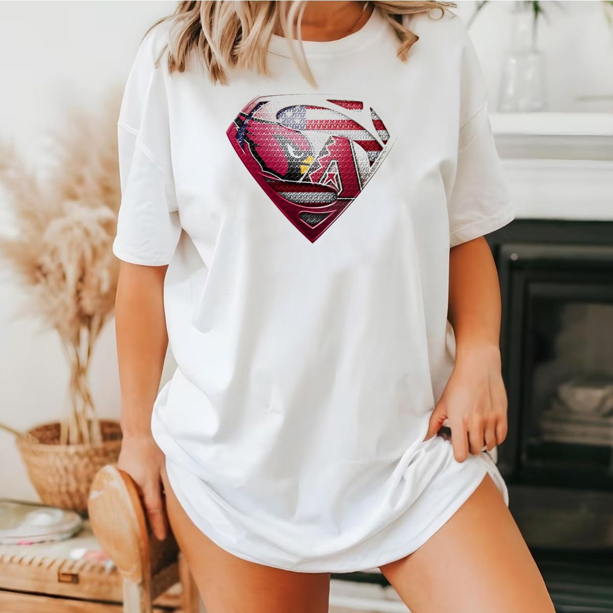 Show your unwavering support for the Arizona Cardinals with our Superman American Flag Arizona Cardinals Logo Fusion T-Shirt. This fan-made design combines the iconic symbols of American pride and football spirit, making it perfect for dedicated fans who want to stand out at game day events, casual outings, or themed parties. Crafted with comfort in mind, this T-shirt is not just a statement piece but a versatile addition to your wardrobe, ready to celebrate your love for the game and your favorite team.