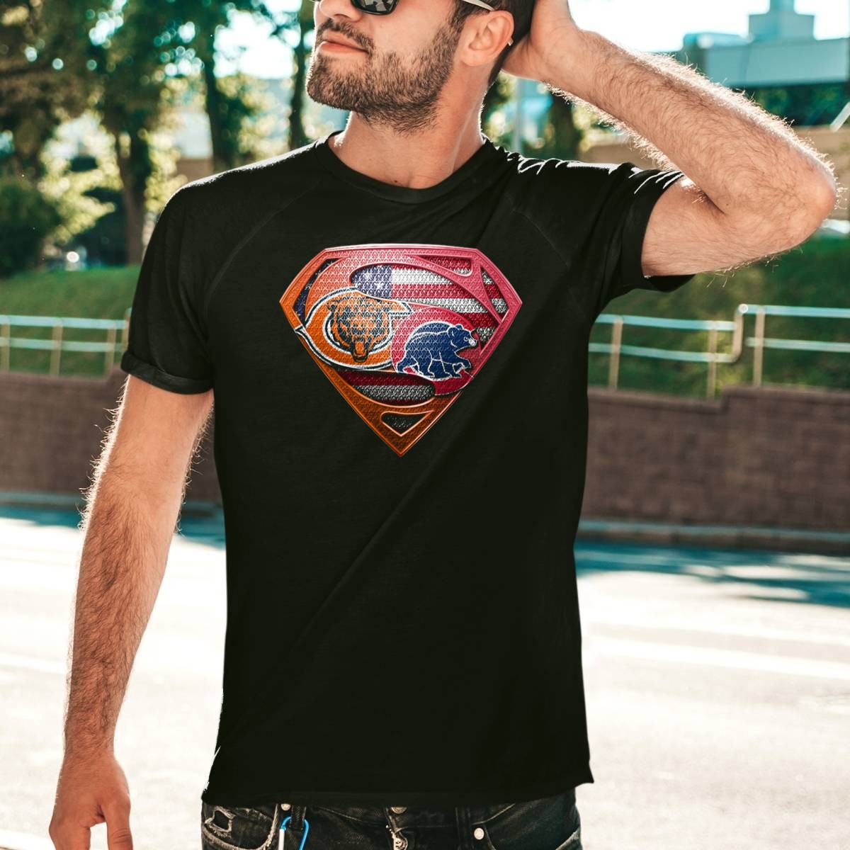 Show your love for both the Chicago Bears and the iconic Superman with this uniquely designed fan-made T-shirt. Perfect for die-hard fans and casual wear enthusiasts alike, this shirt features a striking American flag shield graphic that celebrates your favorite team in an unparalleled style. Ideal for game days, themed events, or everyday wear, this classic fit tee combines comfort and patriotism, making it a must-have addition to your wardrobe.