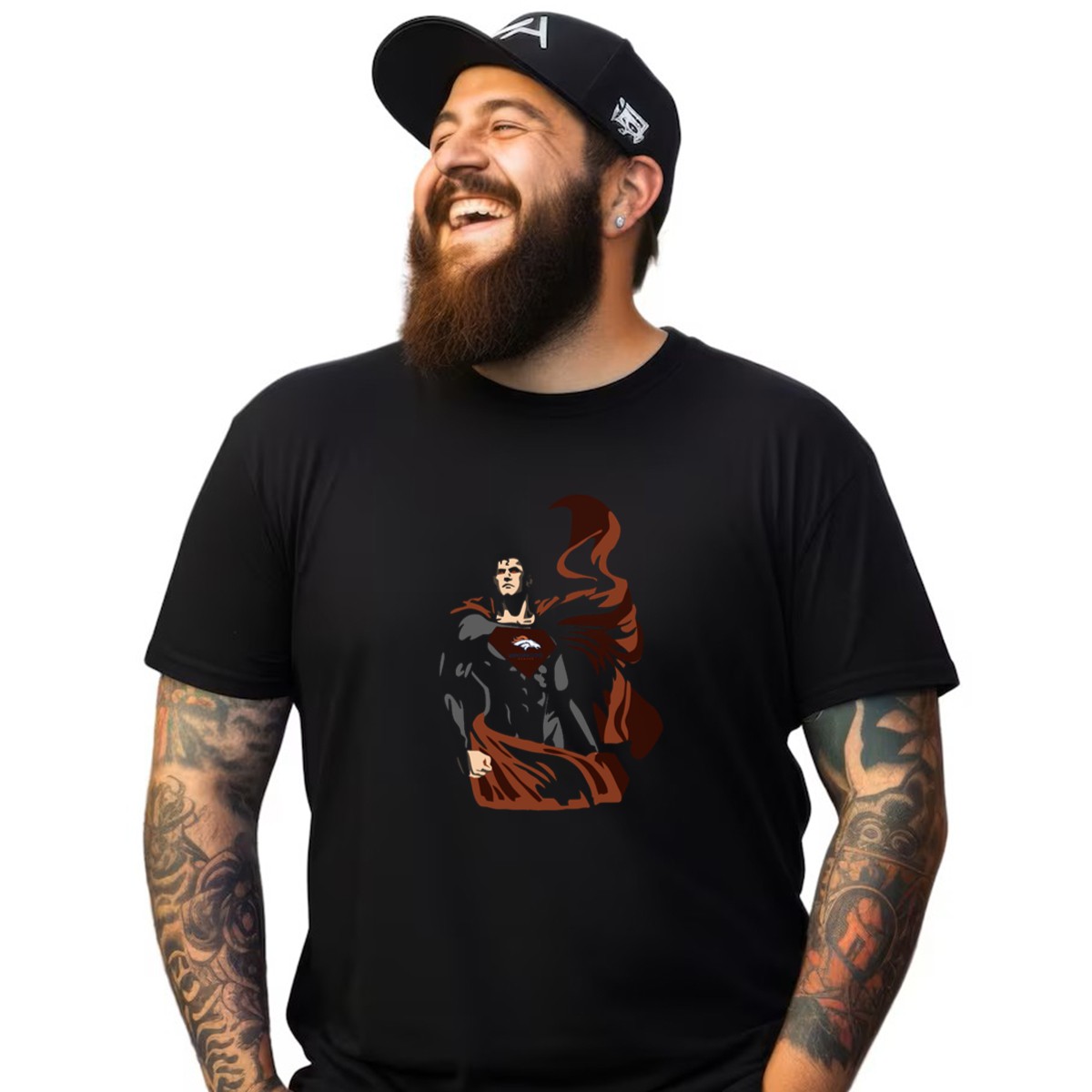Show off your superhero spirit with our Superman Denver Broncos Fans Hero Cape Logo T-Shirt! Perfect for passionate Broncos fans, this shirt combines your love for football with the iconic superhero theme, making it an ideal choice for casual outings, game days, or themed events. Crafted with a unique fan-made design and printed in the USA, this tee not only stands out in style but also offers comfort and durability for all-season wear.