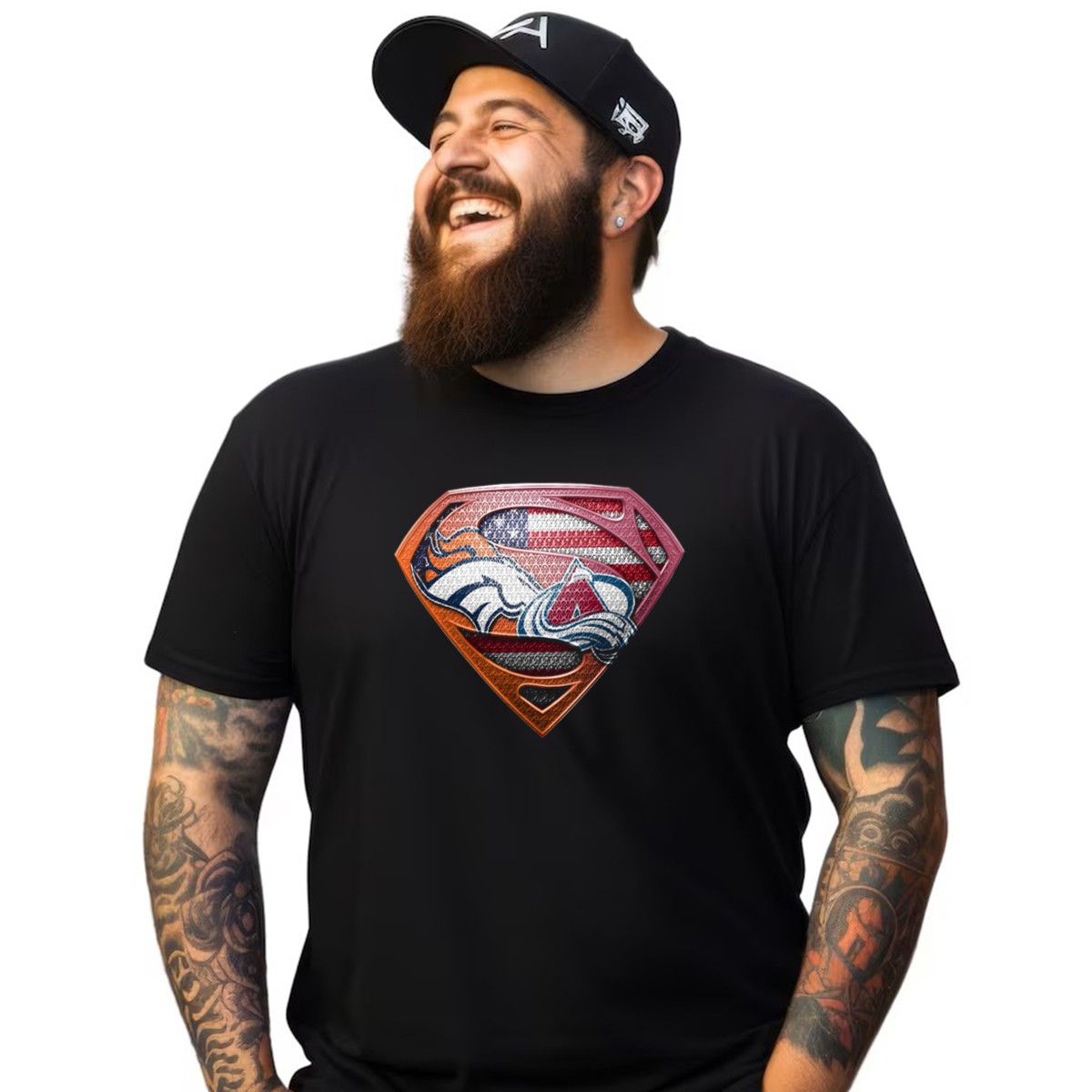 Show your love for superheroes and your favorite Colorado teams with this unique Superman Shield T-Shirt featuring the Denver Broncos and Colorado Avalanche American Flag pattern. Perfect for fans who want to combine their passion for comics with their local pride, this shirt is ideal for casual outings, themed events, or just lounging around. Made for comfort and style, it’s a must-have addition to any fan’s wardrobe!