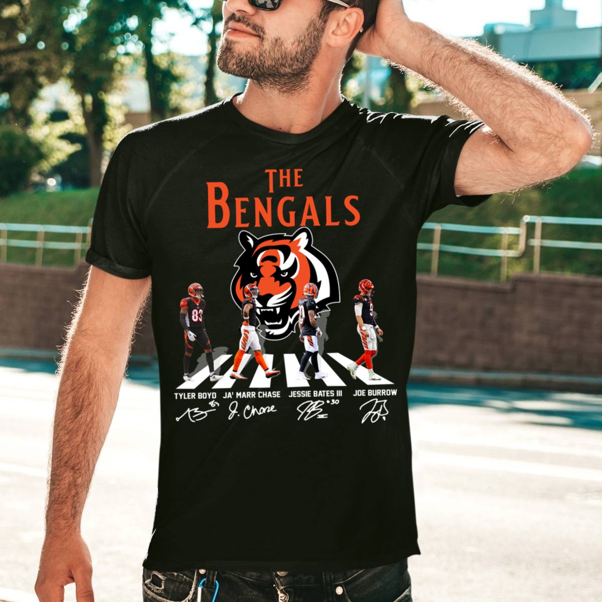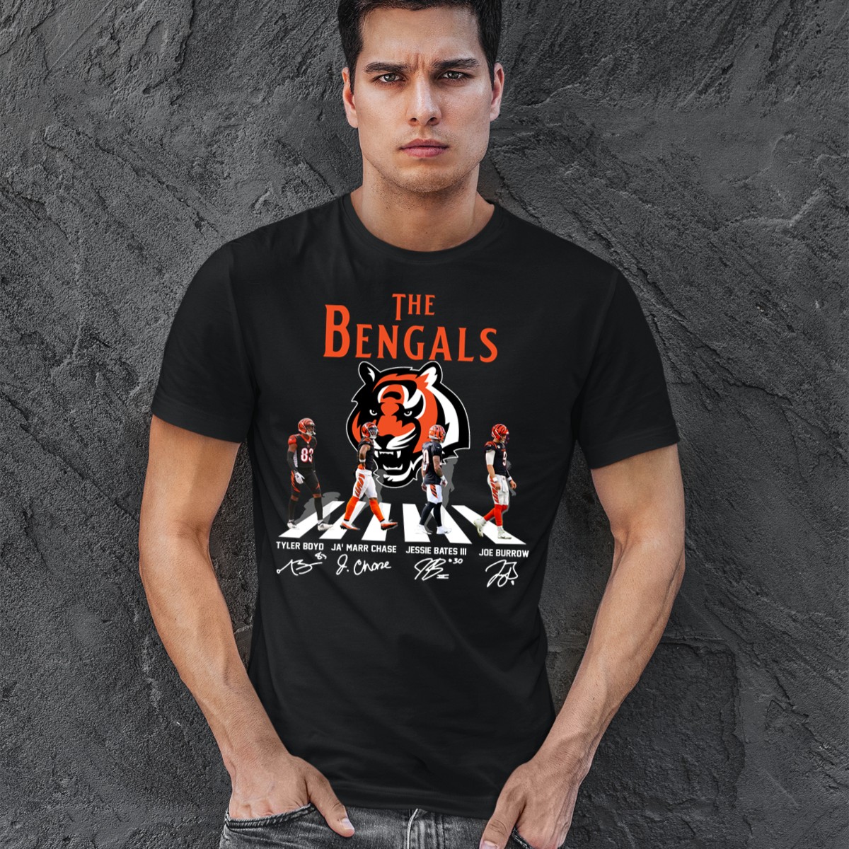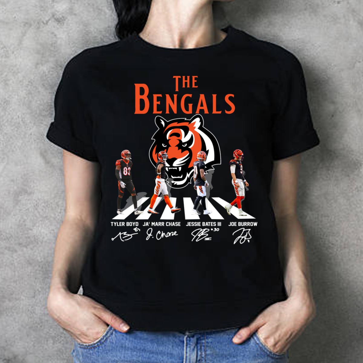 Show your team spirit with the Bengals Team Abbey Road Signatures 2022 T-Shirt! Perfect for die-hard Cincinnati Bengals fans, this fan-made design captures the essence of camaraderie and passion for the game. Whether you’re at a tailgate party, watching the game at home, or out and about, this shirt adds a unique touch to your casual wardrobe, celebrating your love for the Bengals in style.