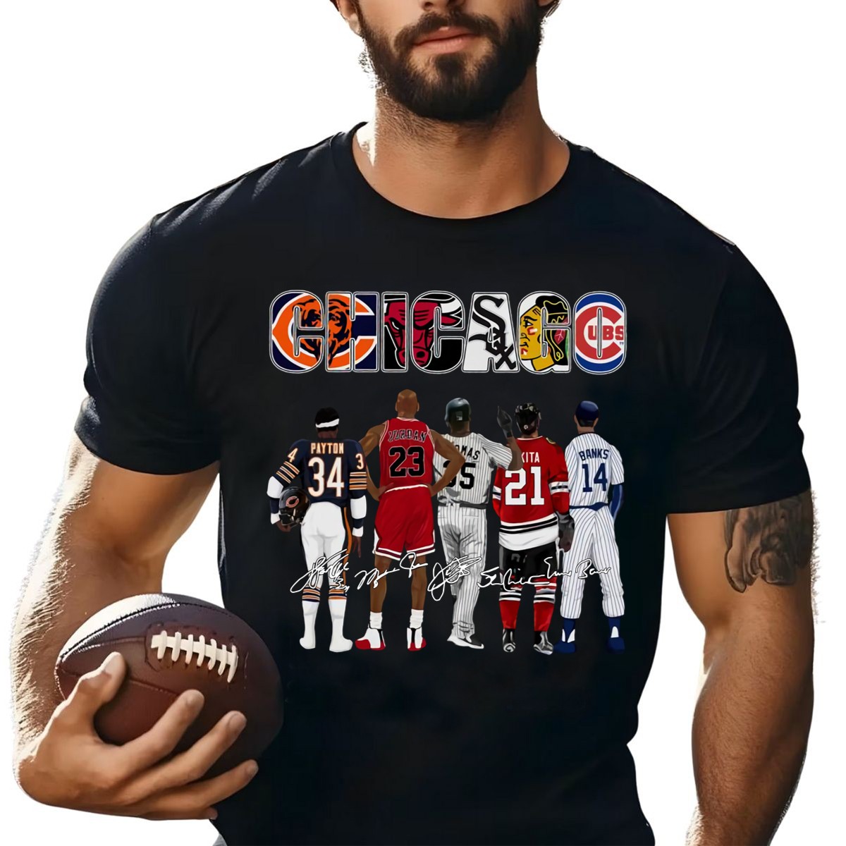 Show your unwavering support for Chicago’s legendary sports teams with the Chicago Sport Teams Payton Jordan Thomas Mikita And Banks Signatures Shirt. This fan-made design is perfect for devoted sports enthusiasts and casual wearers alike. Ideal for game days, themed events, or just hanging out with friends, this shirt showcases the signatures of iconic players, making it a unique addition to any wardrobe. Crafted for comfort and style, this T-shirt is a must-have for anyone who wants to celebrate their love for Chicago sports.