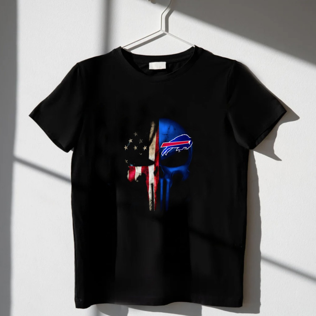 Show your unwavering support for your favorite team with our Punisher Skull American Flag Buffalo Bills T-Shirt! This fan-made design is perfect for die-hard Bills fans who want to showcase their team spirit in a bold and unique way. Whether you’re at a game, a themed event, or just enjoying a casual day out, this eye-catching shirt combines comfort and style, making it an essential addition to your wardrobe.