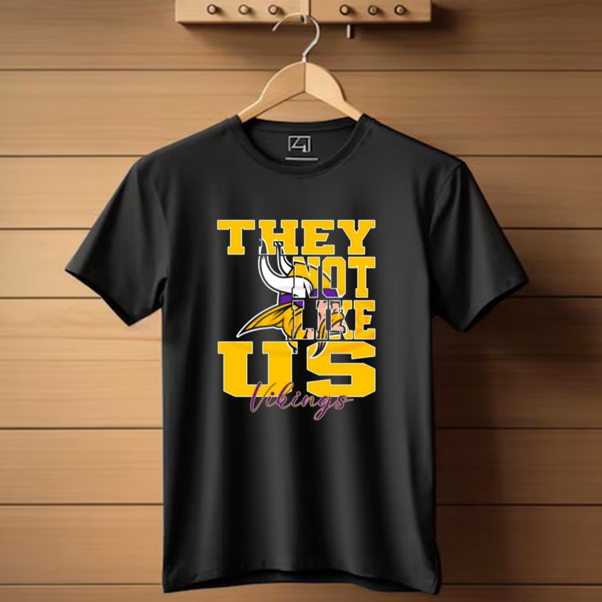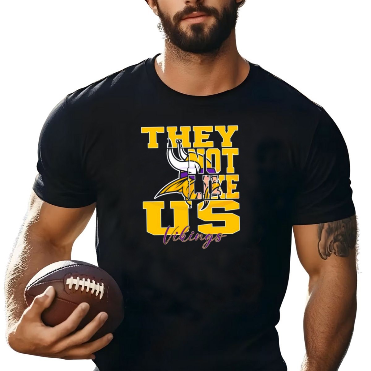 Show your fierce loyalty to the Minnesota Vikings with our “They Not Like Us” graphic T-shirt! This fan-made design captures the spirit of the game, making it perfect for die-hard football fans who want to showcase their pride. Whether you’re heading to a game, a themed event, or just enjoying casual outings with friends, this comfortable and stylish tee is a must-have for any Vikings supporter. Printed in the USA, it’s a unique addition to your all-season wardrobe that celebrates your team in a bold way!