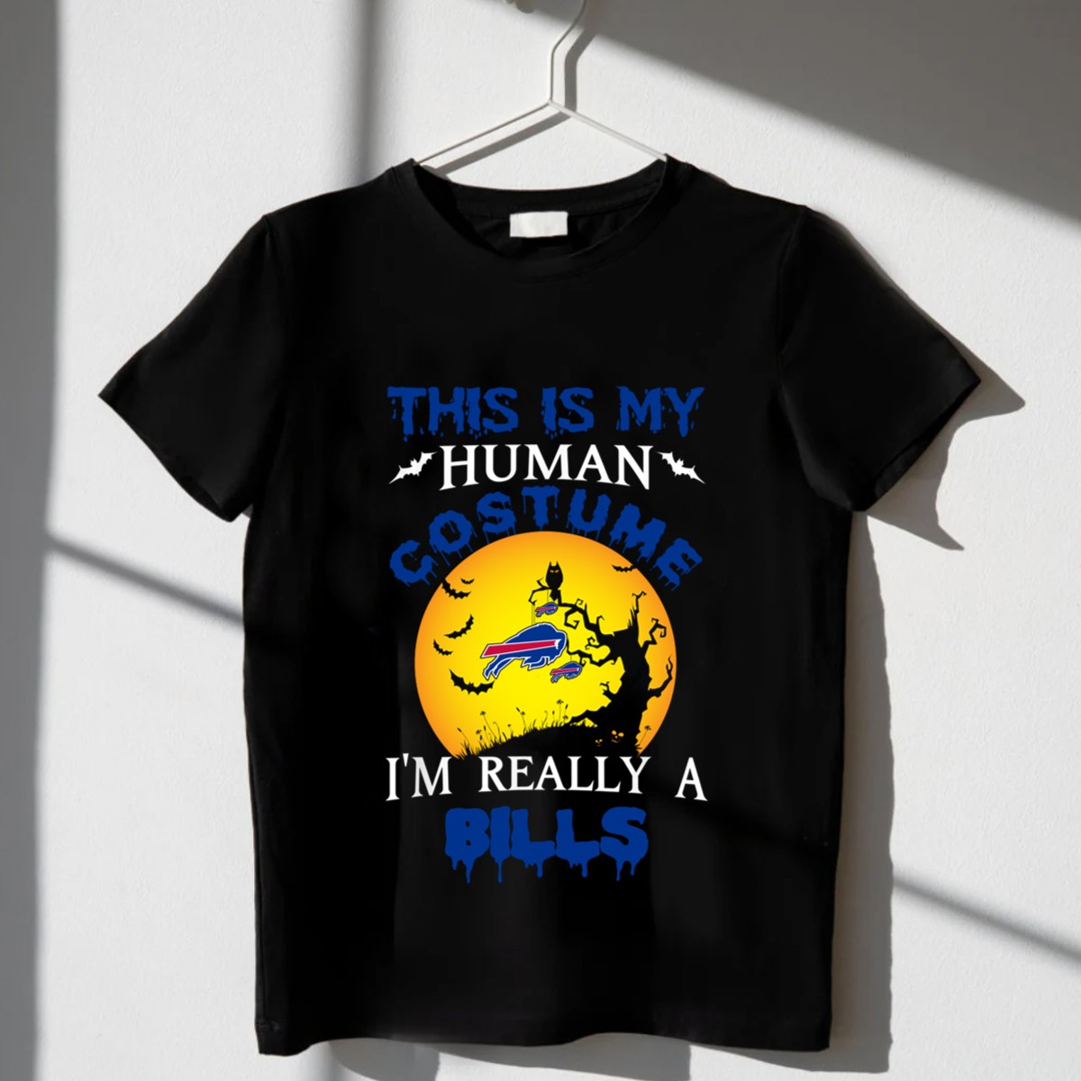 Show off your team spirit this Halloween with our “This Is My Human Costume Really A Buffalo Bills” T-shirt! Perfect for die-hard Buffalo Bills fans, this fun and playful design is ideal for casual outings, themed events, or just lounging around during game day. Made for comfort and style, this shirt is a must-have for anyone looking to blend their love for football with a touch of Halloween flair. Stand out in the crowd while celebrating your favorite team!