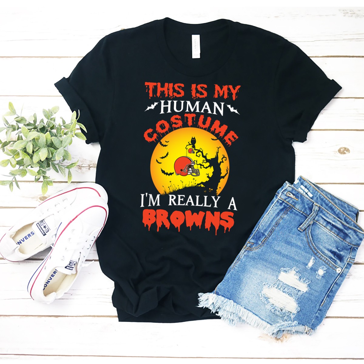 This Is My Human Costume Really A Cleveland Browns Halloween T-Shirt
