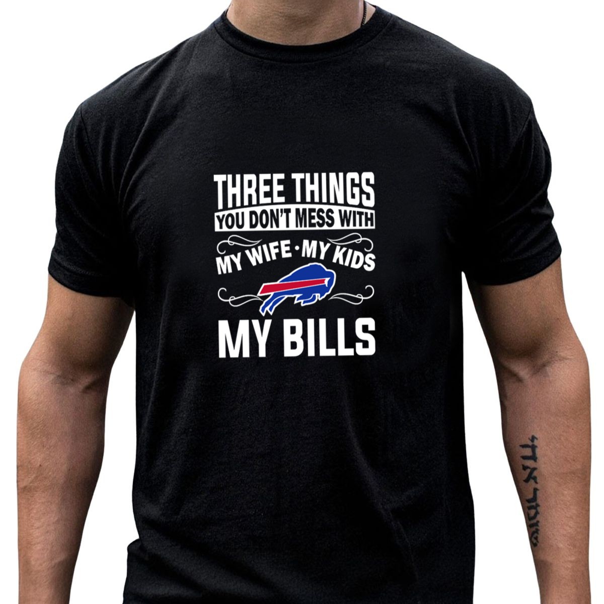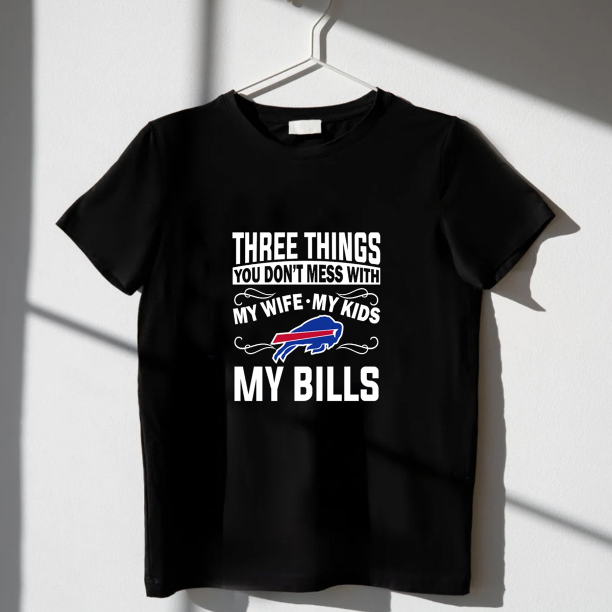 Show your unwavering support for your family and the Buffalo Bills with our “Three Things You Don’t Mess With: My Wife, My Kids, Buffalo Bills” T-shirt. This fan-made design is perfect for passionate fans who want to express their loyalty while keeping it casual. Ideal for game days, family gatherings, or just lounging around, this shirt combines comfort and style, making it a must-have addition to your wardrobe.