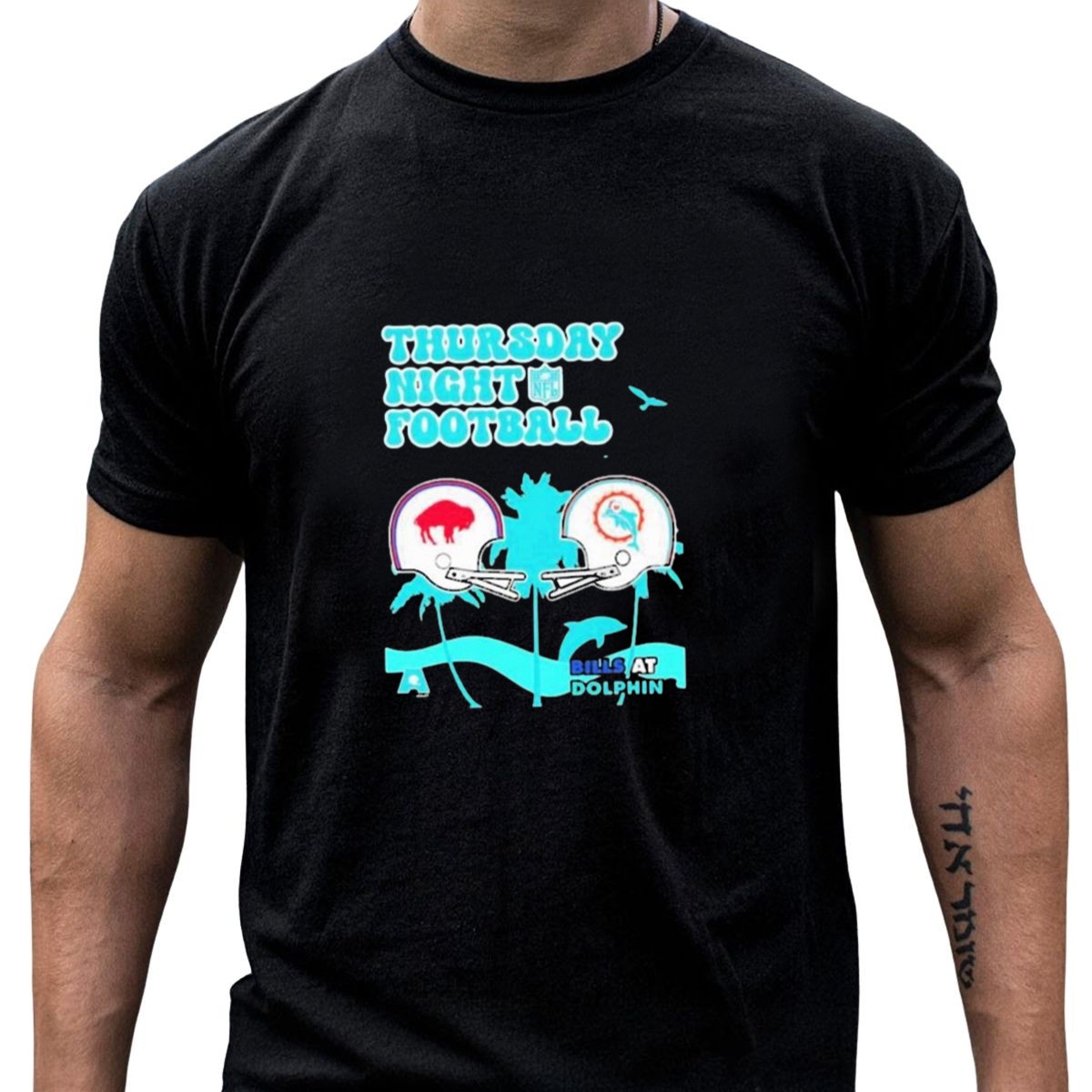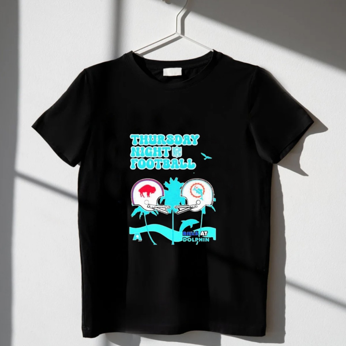 Gear up for the ultimate showdown with our Thursday Night Football Buffalo Bills at Miami Dolphins 2024 NFL Matchup T-Shirt! This fan-made graphic tee is perfect for avid football fans who want to showcase their team spirit while enjoying a classic fit. Whether you’re watching the game at home, heading to a themed event, or simply looking for a comfortable daily wear option, this shirt is designed to keep you stylish and comfortable all season long. Proudly printed in the USA, it’s a must-have addition to your game day wardrobe!