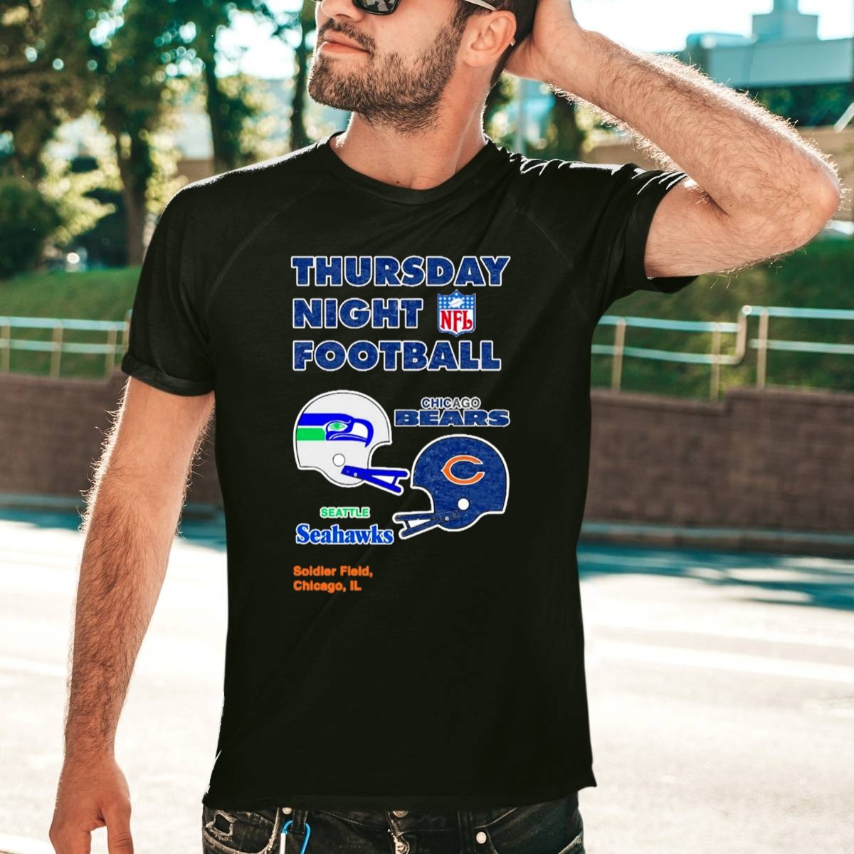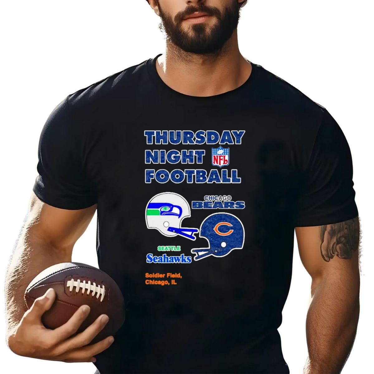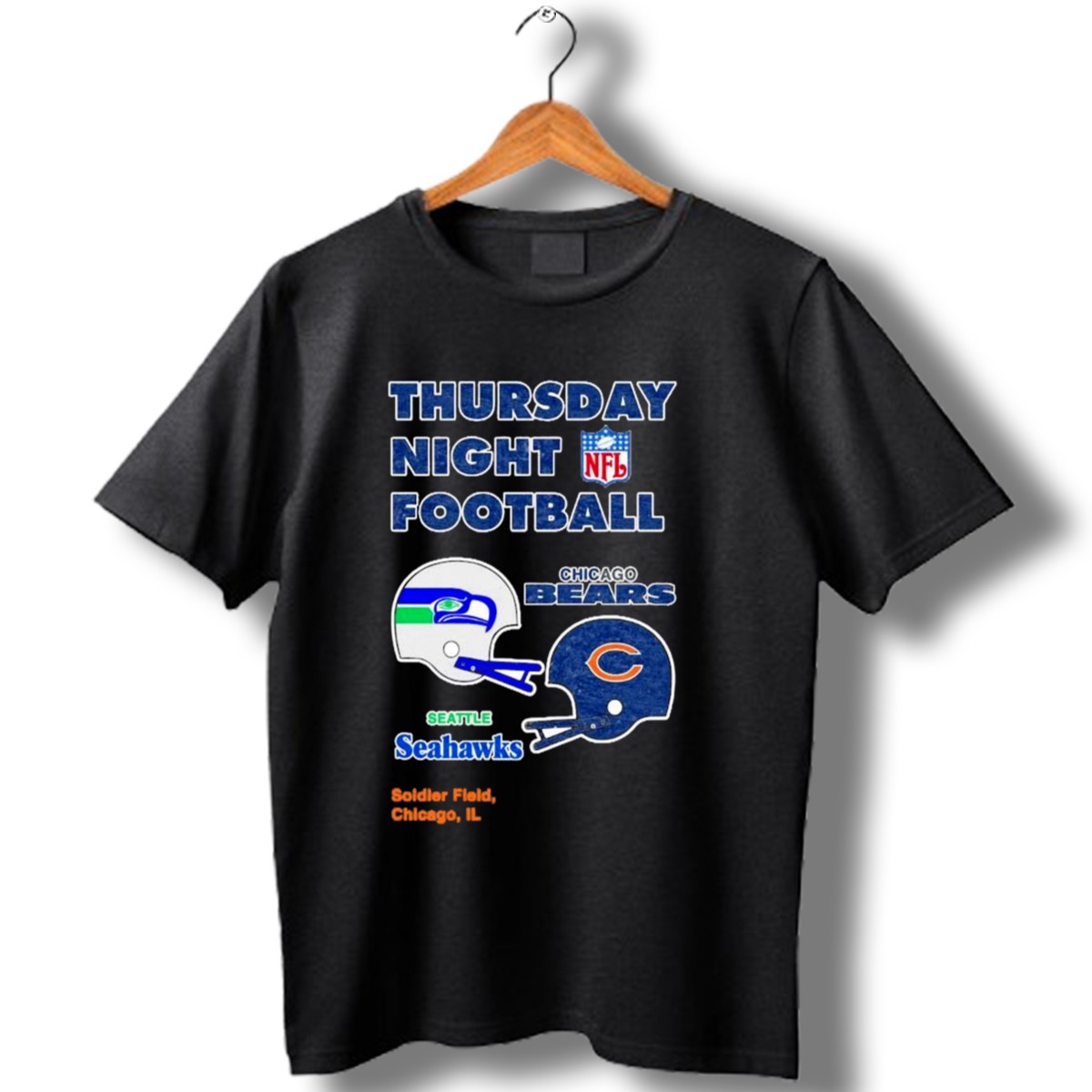 Gear up for game day with our Thursday Night Football T-shirt, featuring an eye-catching design that celebrates the epic showdown between the Chicago Bears and Seattle Seahawks at Soldier Field. Perfect for passionate fans and casual wearers alike, this shirt is ideal for themed events, tailgating, or simply cheering on your favorite team from the comfort of your home. Made with love and printed in the USA, it’s a unique addition to any football fan’s wardrobe.