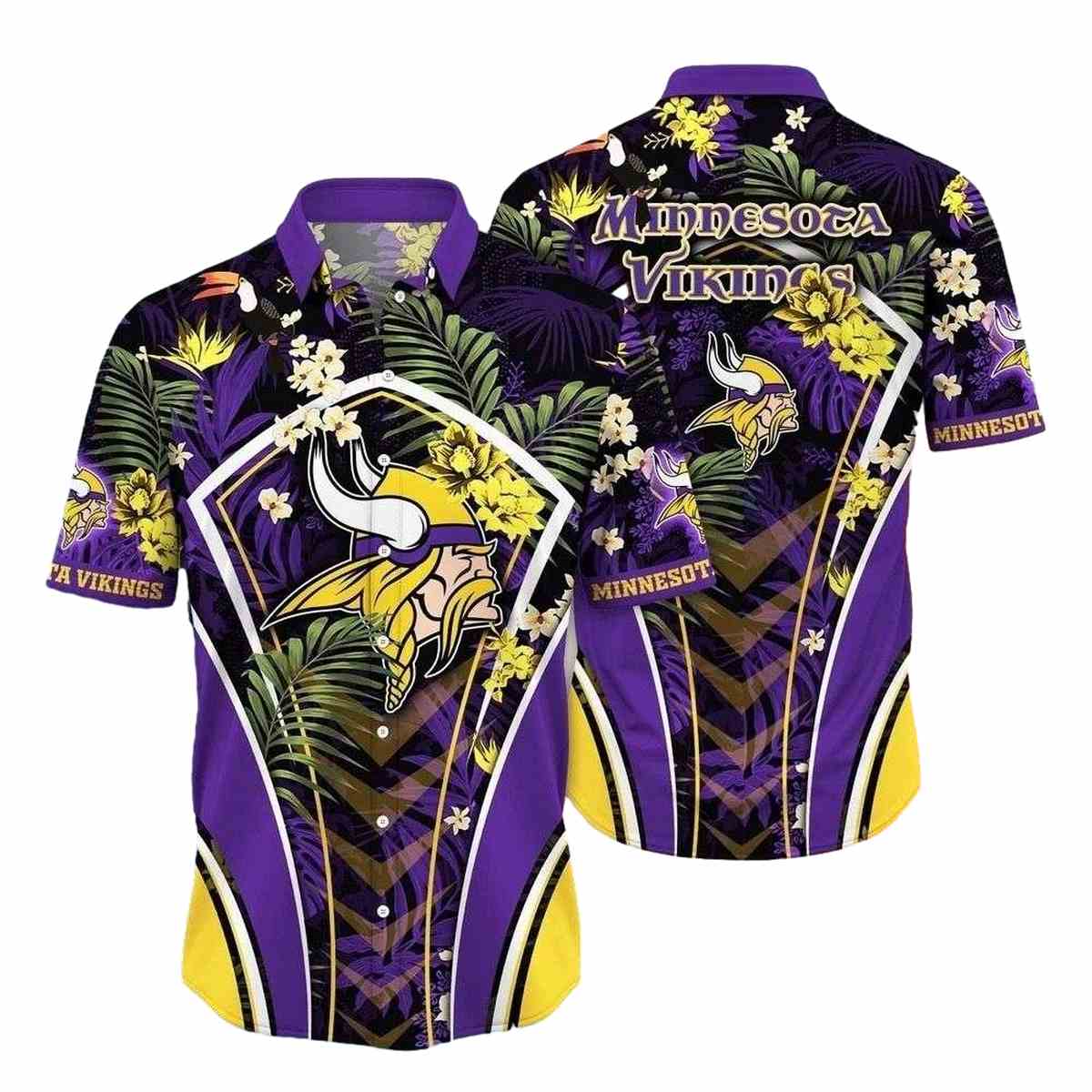 Embrace the spirit of summer and show off your team pride with our Tiki Torch Purple And Gold Minnesota Vikings Hawaiian Shirt. Designed for fans who love to celebrate in style, this vibrant shirt is perfect for game days, beach parties, or any casual outing. Its unique graphic print combines the fun of Hawaiian aesthetics with the bold colors of the Vikings, making it a standout choice for any occasion.