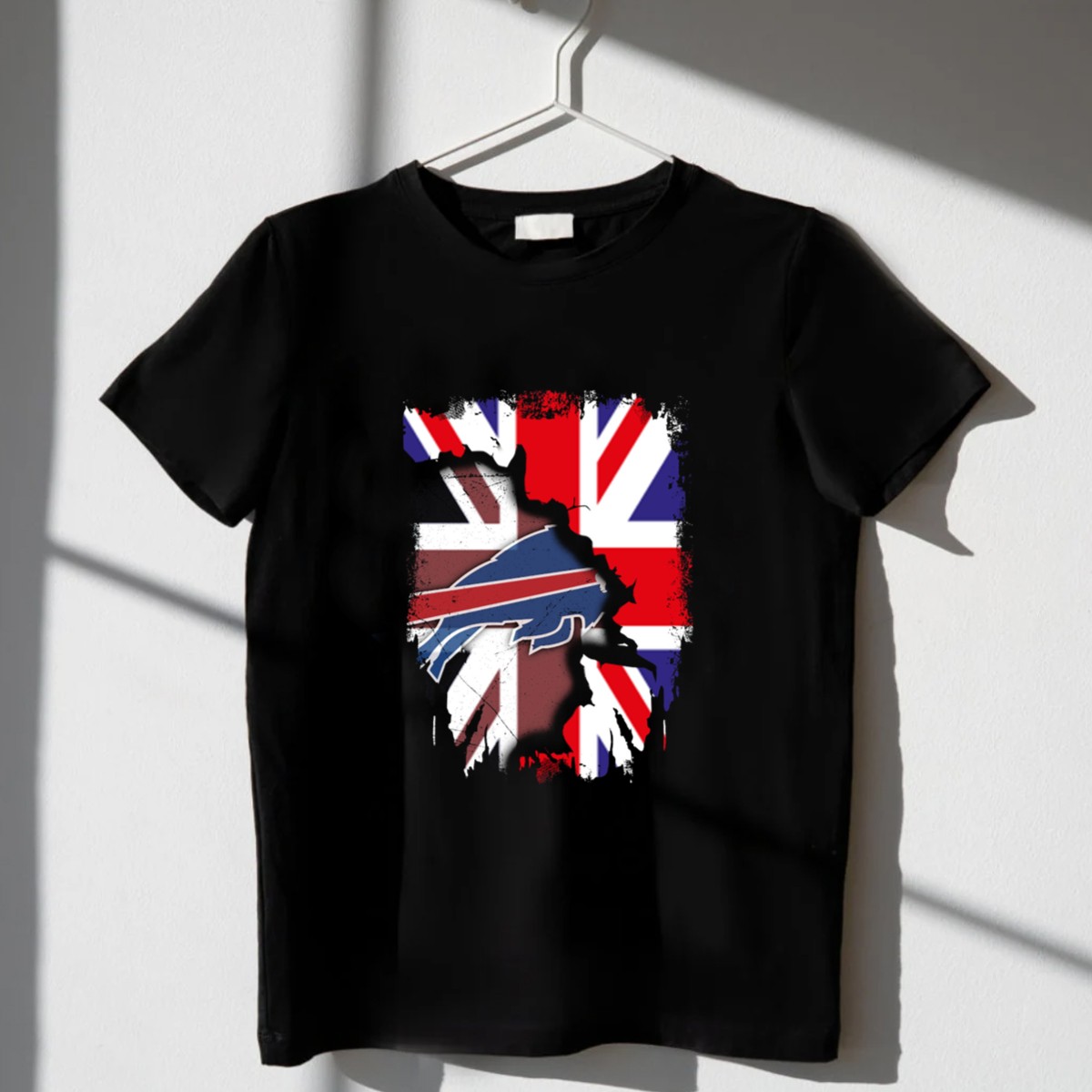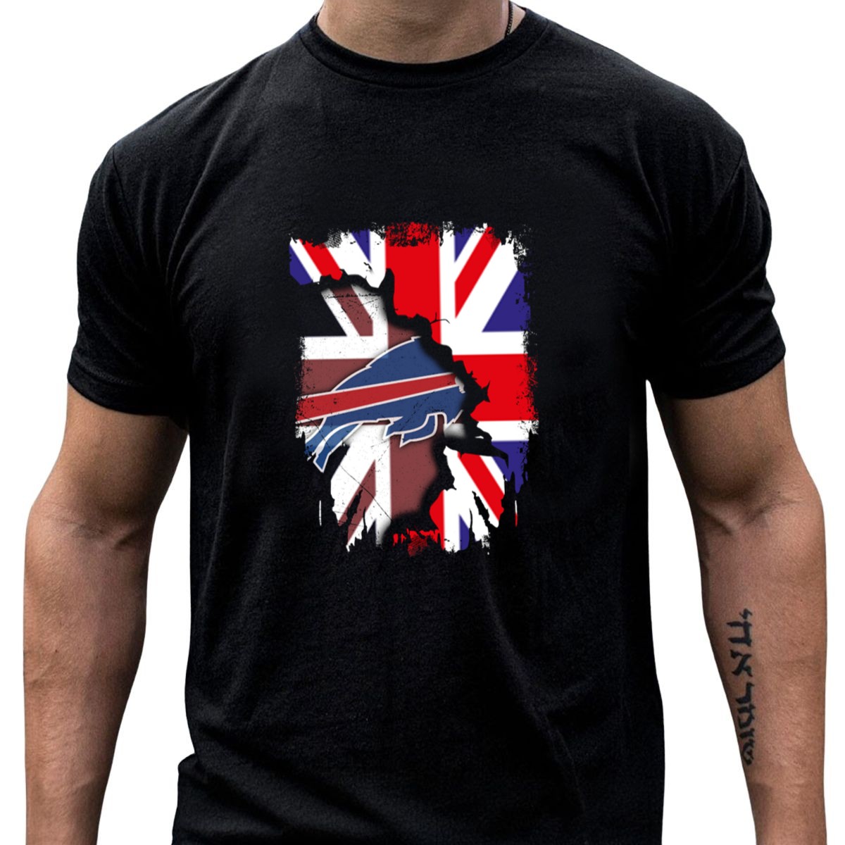 Show your pride with our United Kingdom Flag Torn with Buffalo Bills T-Shirt, designed for die-hard fans who love to showcase their loyalty in style. This unique fan-made design, printed in the USA, combines iconic elements that celebrate both the UK and the Buffalo Bills, making it perfect for casual wear, themed events, or daily outings. With its classic fit and comfortable fabric, this shirt is an essential addition to any sports enthusiast’s wardrobe.