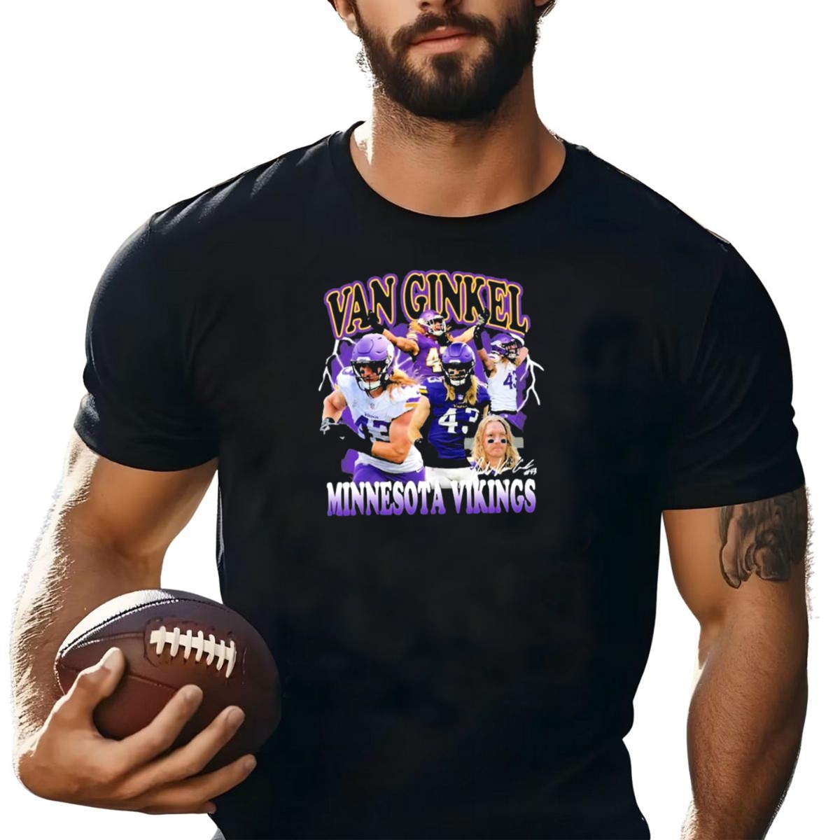 Show your unwavering support for your favorite team with the Van Ginkel Minnesota Vikings Football Player T-Shirt! Perfect for die-hard fans, this shirt features a dynamic design that celebrates the spirit of the game and your passion for the Vikings. Whether you’re at the stadium, hosting a game day party, or just enjoying a casual outing, this shirt is your go-to choice for comfort and style. Proudly printed in the USA, it’s not just a shirt; it’s a statement of loyalty.