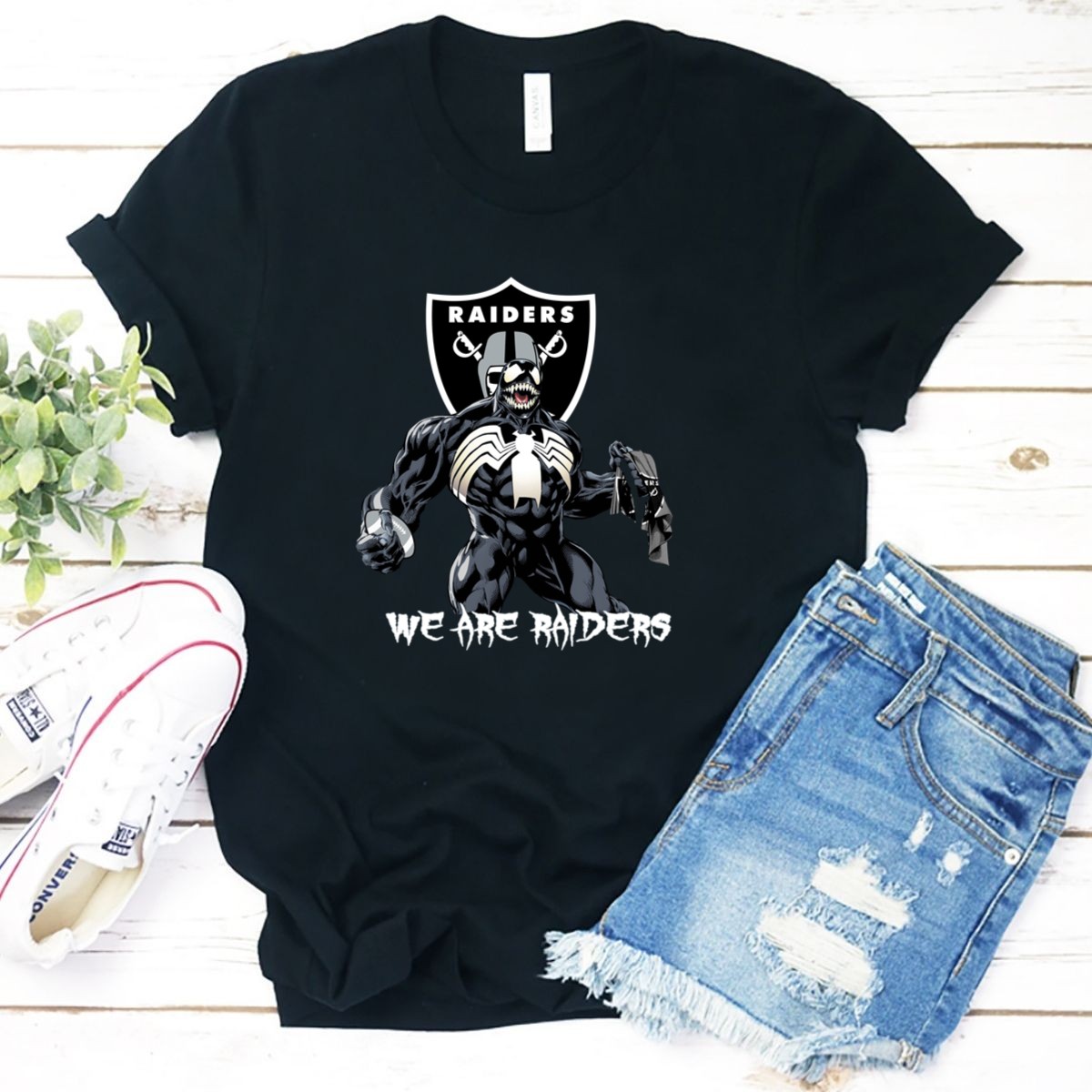 Show your fierce loyalty to the Oakland Raiders with our Venom We Are Oakland Raiders T-Shirt! This fan-made design is perfect for die-hard supporters who want to showcase their team spirit in style. Whether you’re cheering from the stands, hanging out with friends, or attending themed events, this shirt’s bold graphic and classic fit make it a standout choice for any casual occasion. Proudly printed in the USA, this tee combines comfort and durability, making it an essential addition to your game day wardrobe.