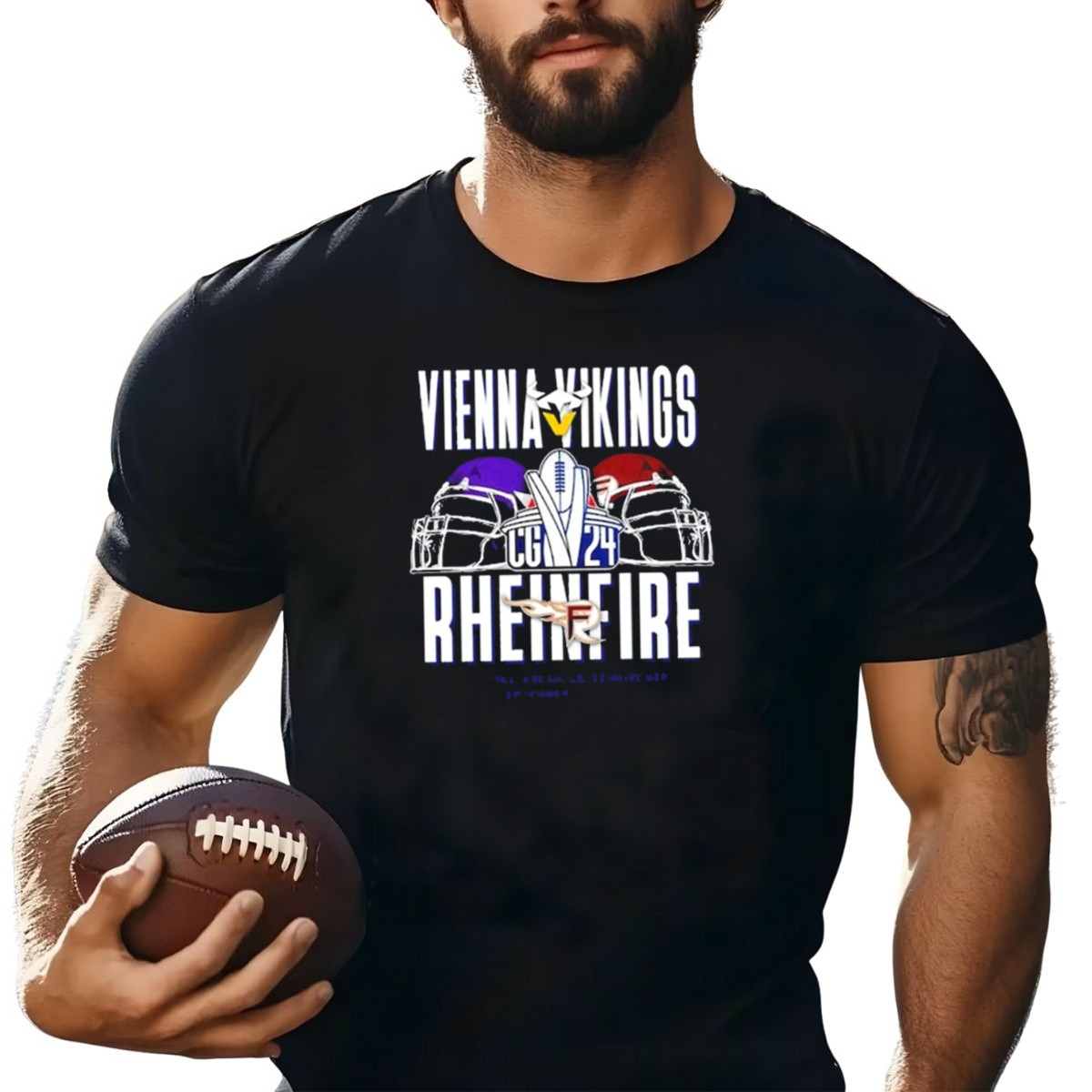 Show your support for your favorite team with the Vienna Vikings Vs Rhein Fire Championship Game T-Shirt! This fan-made graphic tee is perfect for die-hard football fans and is ideal for casual outings, themed events, or just lounging around on game day. Made in the USA, it features a unique design that captures the spirit of competition and camaraderie, making it a must-have for any sports enthusiast.
