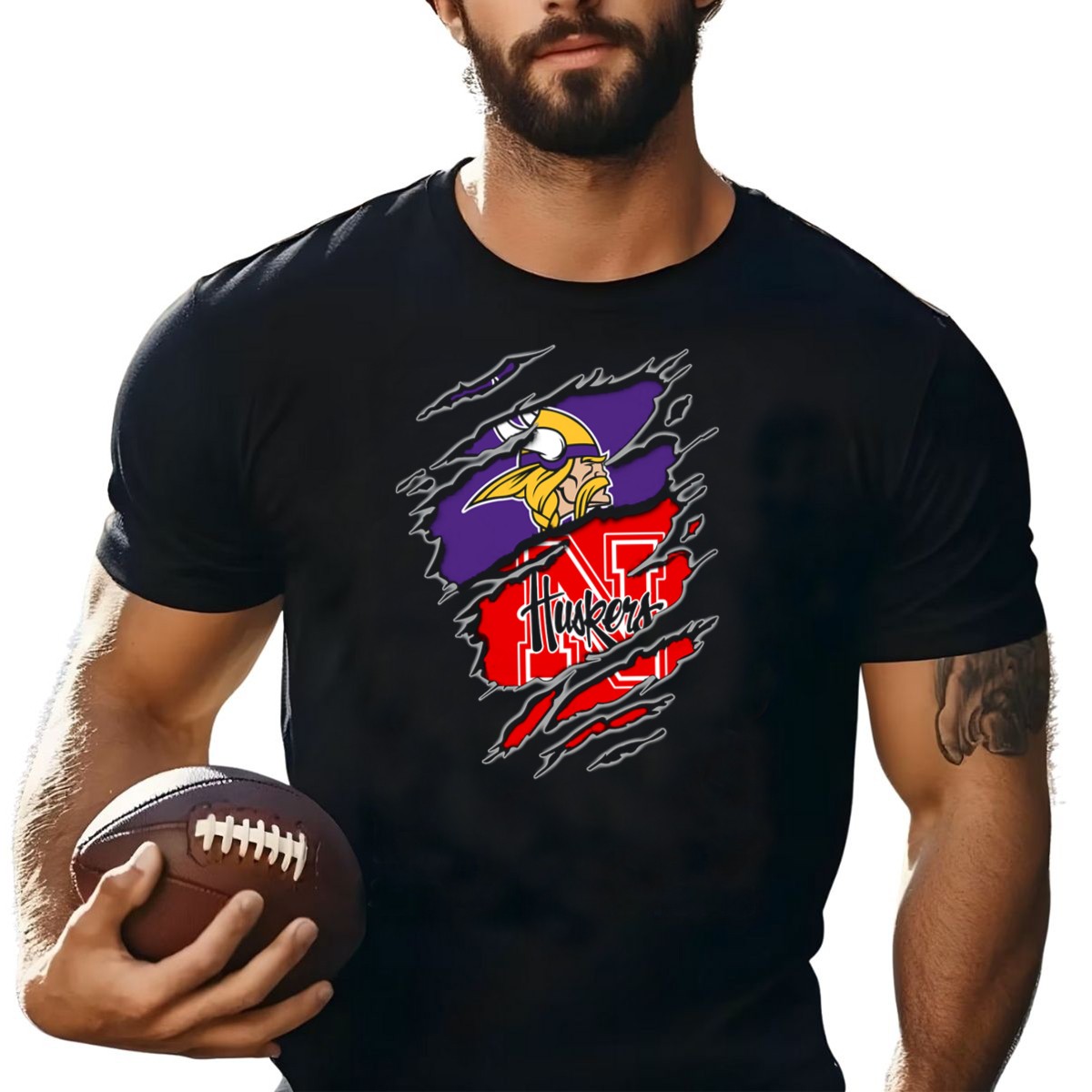Celebrate your love for the Vikings and Huskers with this unique fan-made design printed in the USA! The Vikings Huskers Torn Layered T-Shirt is perfect for those who want to showcase their team spirit while enjoying ultimate comfort. Whether you’re at a game, a themed event, or just hanging out with friends, this classic fit tee is a versatile addition to your wardrobe that will keep you looking stylish and feeling great throughout all seasons.