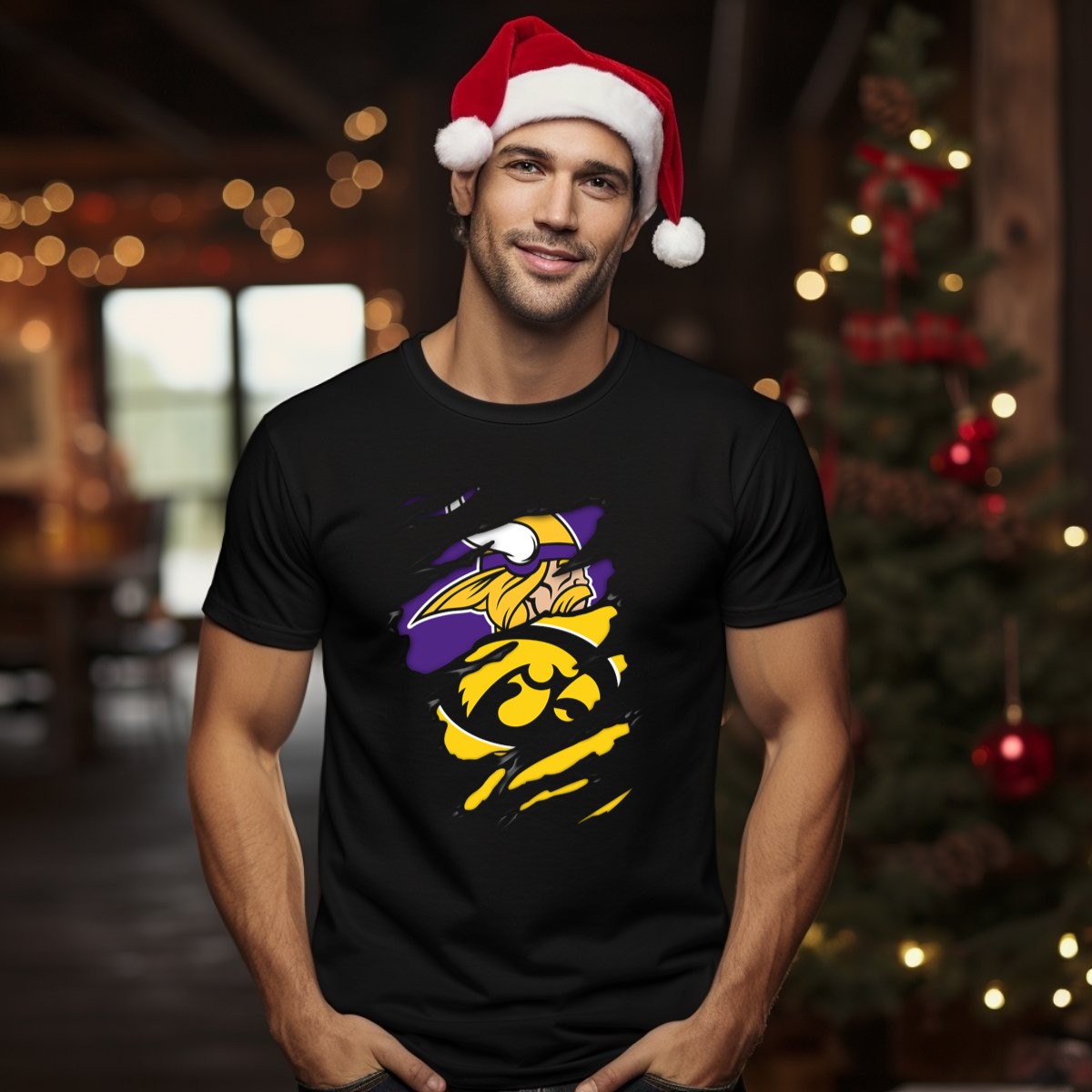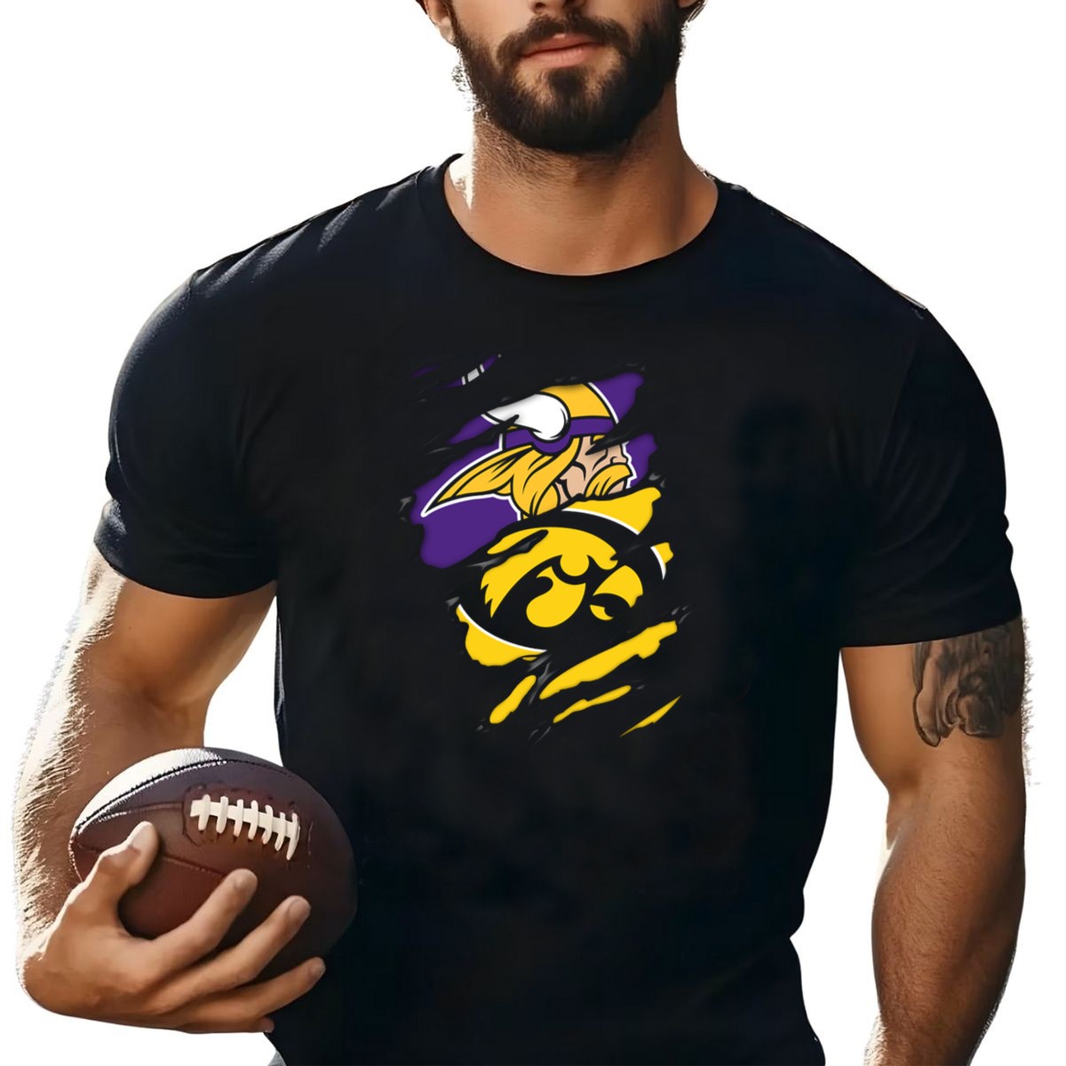 Show your unwavering support for the Iowa Hawkeyes with our Vikings Iowa Hawkeyes Crossover T-Shirt! This fan-made design is perfect for dedicated Hawkeyes enthusiasts who love to showcase their team spirit in style. Whether you’re heading to a game, attending a themed event, or just hanging out with friends, this shirt combines comfort and boldness, making it an essential addition to your casual wardrobe.