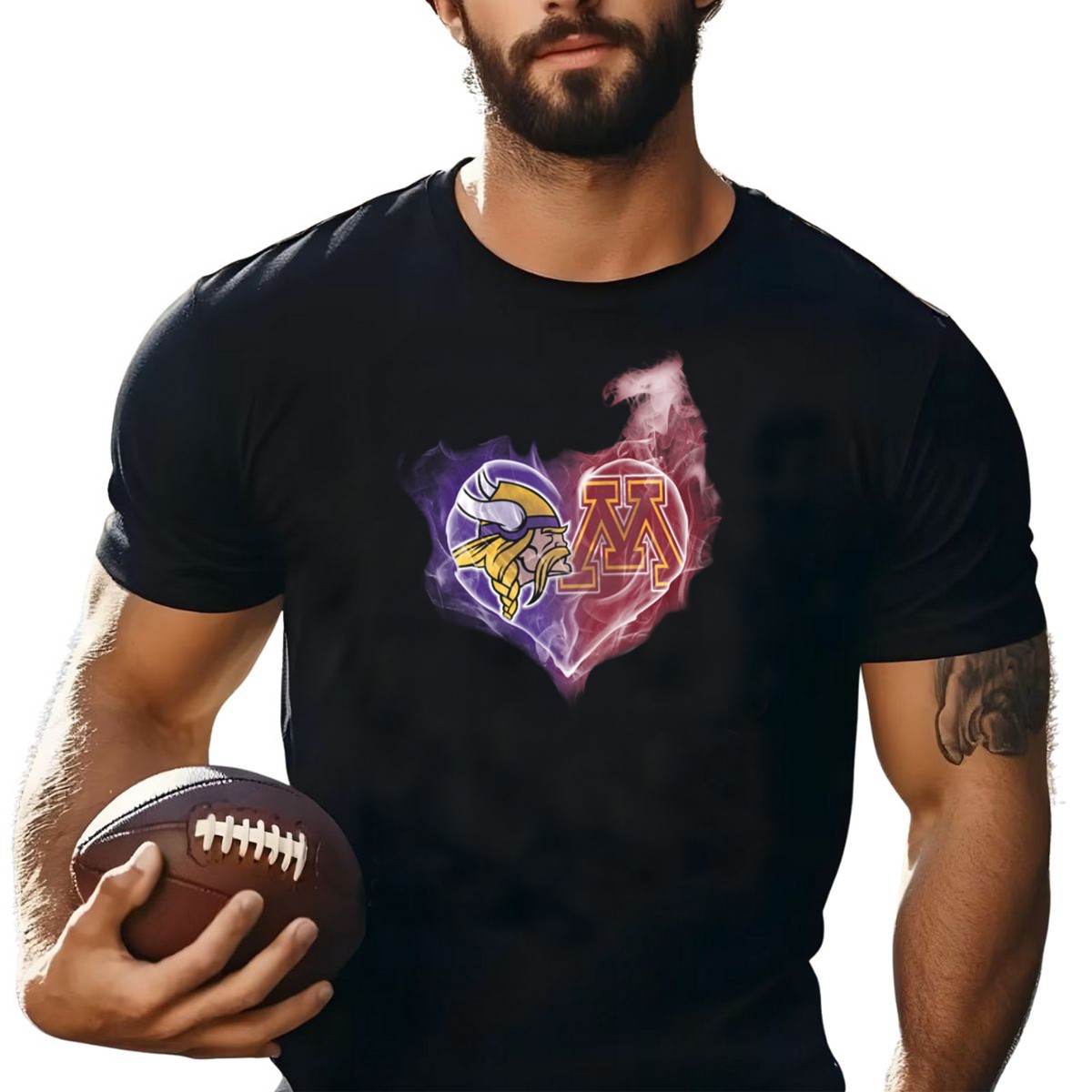 Show your love for the Minnesota Vikings with this fan-made graphic T-shirt, featuring a striking purple and gold heart design. Perfect for die-hard fans and casual wearers alike, this shirt is ideal for game days, themed events, or simply lounging around. Made with comfort and style in mind, this T-shirt is a must-have for anyone looking to showcase their team spirit in a unique and vibrant way.