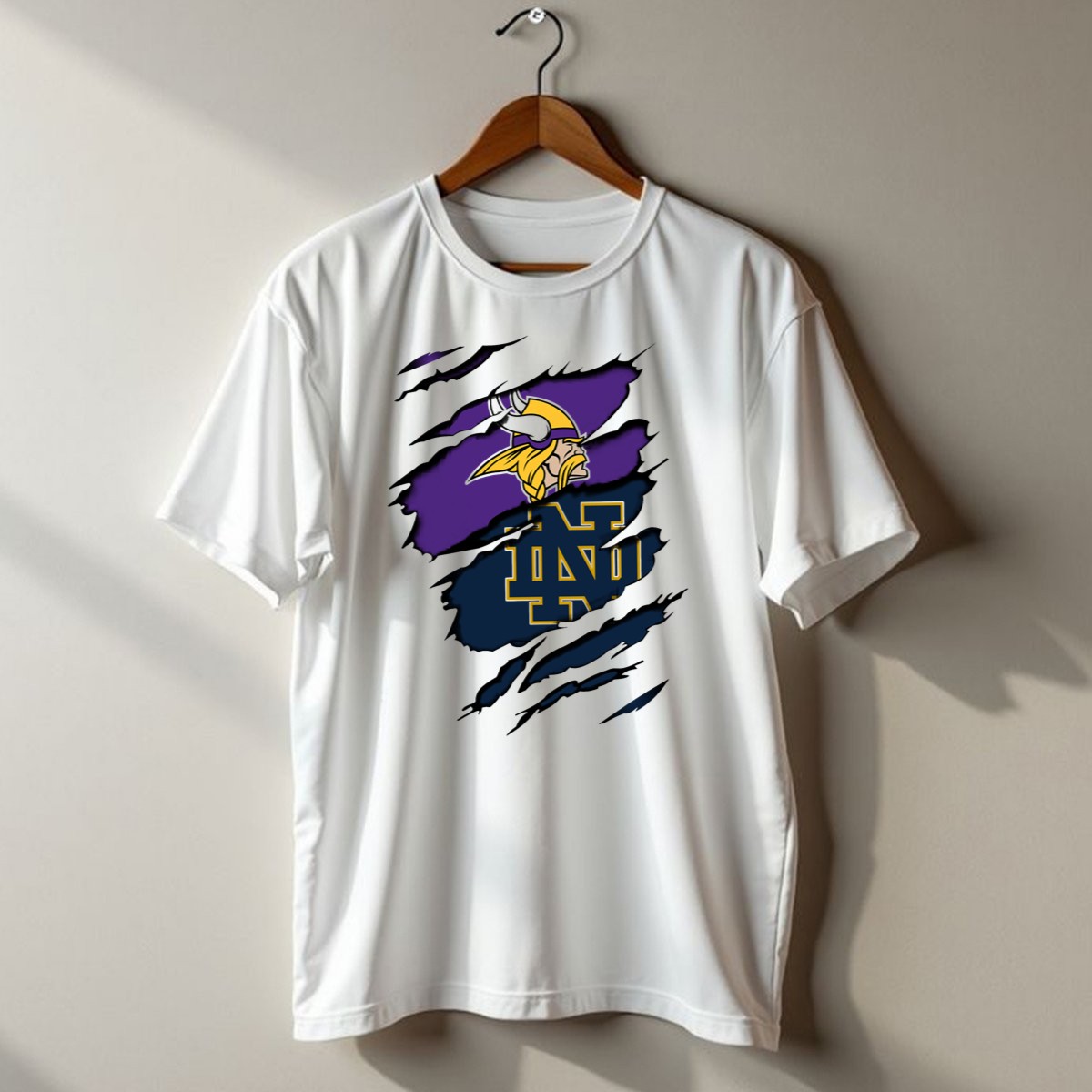Vikings Notre Dame Nd Logo Torn Effect T Shirt