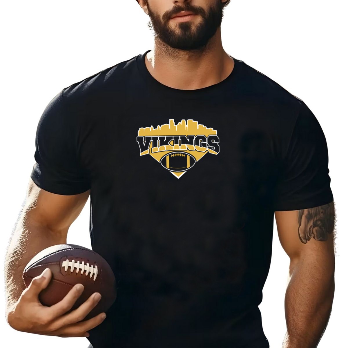 Vikings Skyline Football Team Logo With Gold Football T Shirt