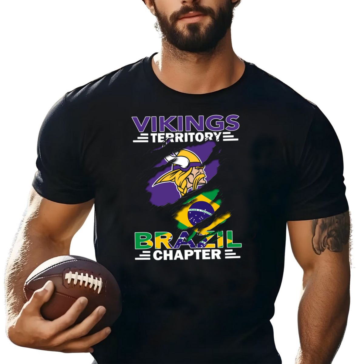 Show your pride for the Vikings Territory Brazil Chapter with this unique graphic printed T-shirt. Perfect for fans who want to express their love for the team in style, this shirt features a vibrant fusion of the iconic purple and gold logo alongside the Brazilian flag. Ideal for casual wear, themed events, or daily outings, it’s a must-have for any true supporter looking to stand out while showcasing their team spirit. Proudly printed in the USA, this shirt combines comfort and style for all-season wear.