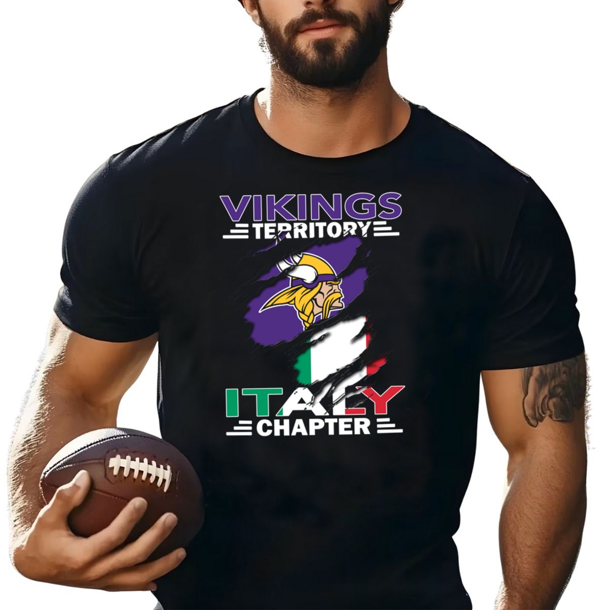 Show your allegiance to the Vikings Territory Italy Chapter with this standout graphic printed T-shirt, perfect for fans and supporters alike. Crafted for comfort and style, this shirt is ideal for casual outings, themed events, or everyday wear, making it a versatile addition to your wardrobe. With its unique fan-made design printed in the USA, this T-shirt not only celebrates your passion but also ensures that you stand out in any crowd.