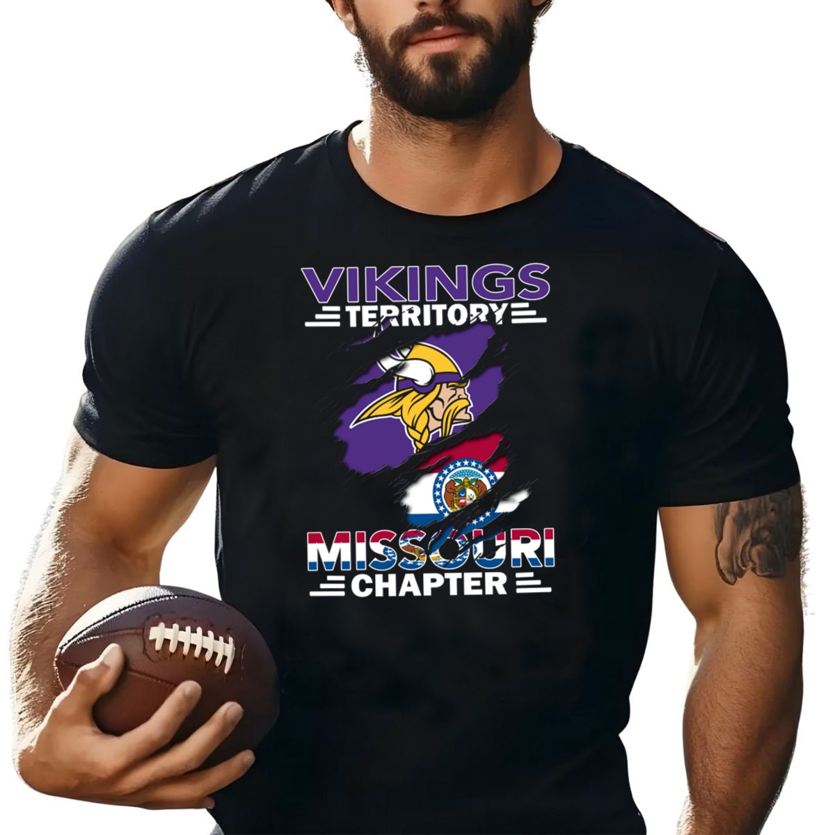 Show your pride for the Missouri Chapter of Vikings Territory with this eye-catching Nordic Warrior T-shirt. Perfect for fans and enthusiasts alike, this shirt is ideal for casual outings, themed events, or just expressing your love for Nordic culture in your everyday wear. Made with a unique fan-made design, each shirt is printed in the USA, ensuring quality and authenticity that sets it apart.
