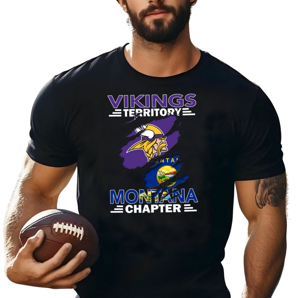 Show your allegiance to the Vikings Territory Montana Chapter with this vibrant fan-made graphic T-shirt! Perfect for dedicated Minnesota football enthusiasts, this shirt is a fantastic choice for casual wear, themed events, or simply cheering on your favorite team during the game. Made with pride in the USA, its unique design captures the spirit of football fandom, making it a must-have for every supporter.