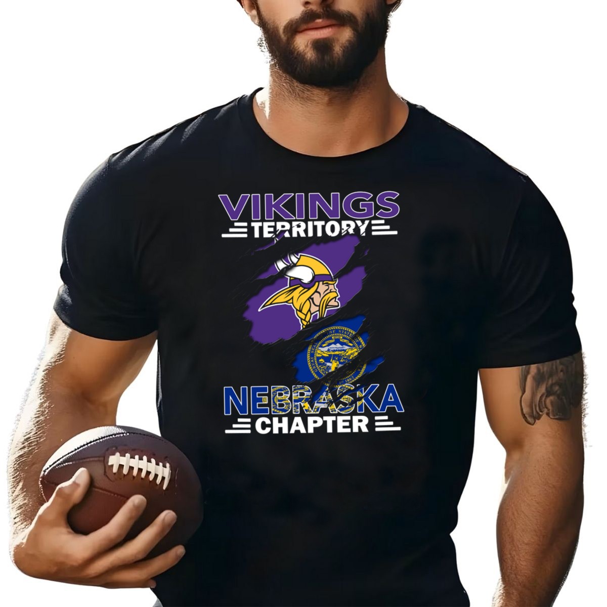 Show your pride for the Nebraska chapter of the Vikings with this eye-catching graphic printed T-shirt. Perfect for fans and supporters alike, this shirt is ideal for casual wear, themed events, or daily outings. Made right here in the USA, the unique fan-made design showcases the Viking logo alongside the Nebraska seal, making it a standout piece in any wardrobe.