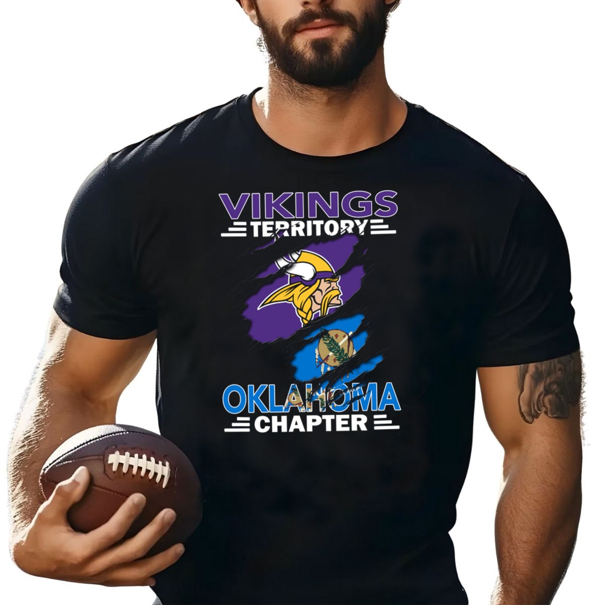 Vikings Territory Oklahoma Chapter With Minnesota Vikings Logo And Oklahoma State Flag T Shirt