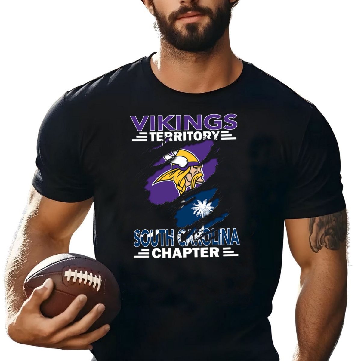 Show your pride for the Vikings Territory South Carolina Chapter with this eye-catching sports fan T-shirt! Featuring a vibrant design that showcases an iconic Viking alongside the beloved palmetto, this shirt is perfect for die-hard fans who want to represent their team in style. Whether you’re heading to a game, a themed event, or just enjoying a casual day out, this T-shirt combines comfort and flair, making it a must-have addition to your wardrobe.